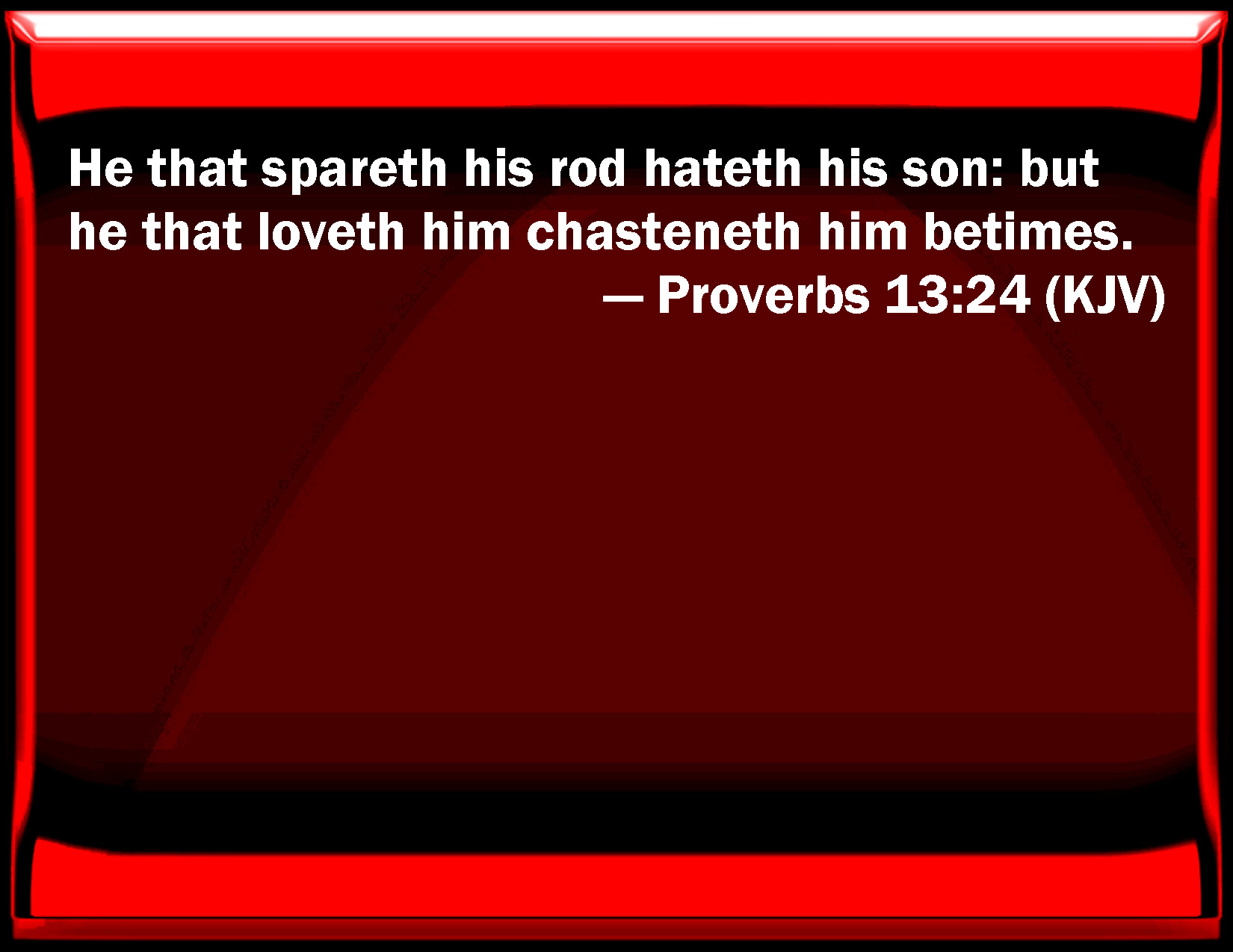 Proverbs 13:24 He that spares his rod hates his son: but he that loves him chastens him betimes.