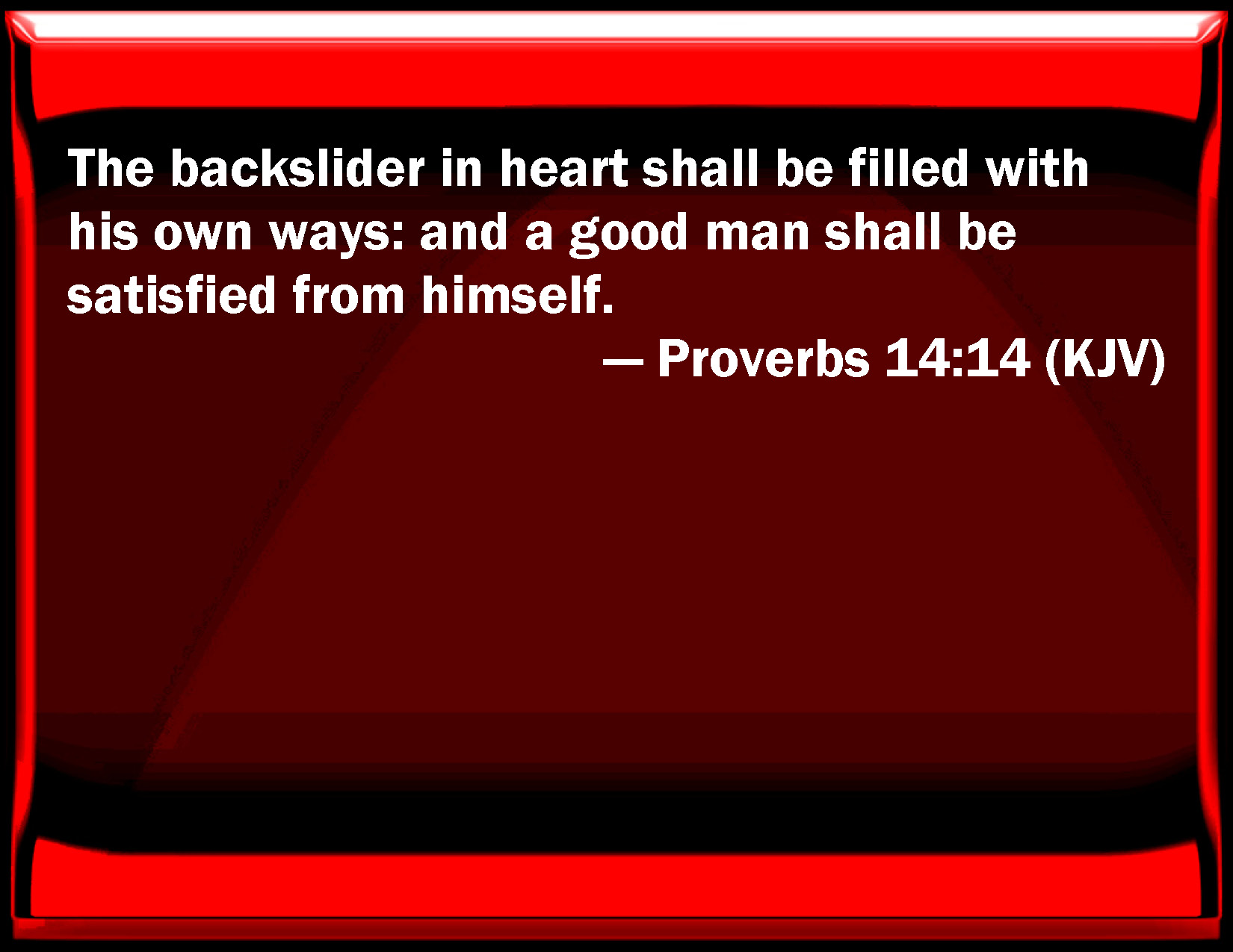 Proverbs 14:14 The backslider in heart shall be filled with his own ways: and a good man shall be satisfied from himself.