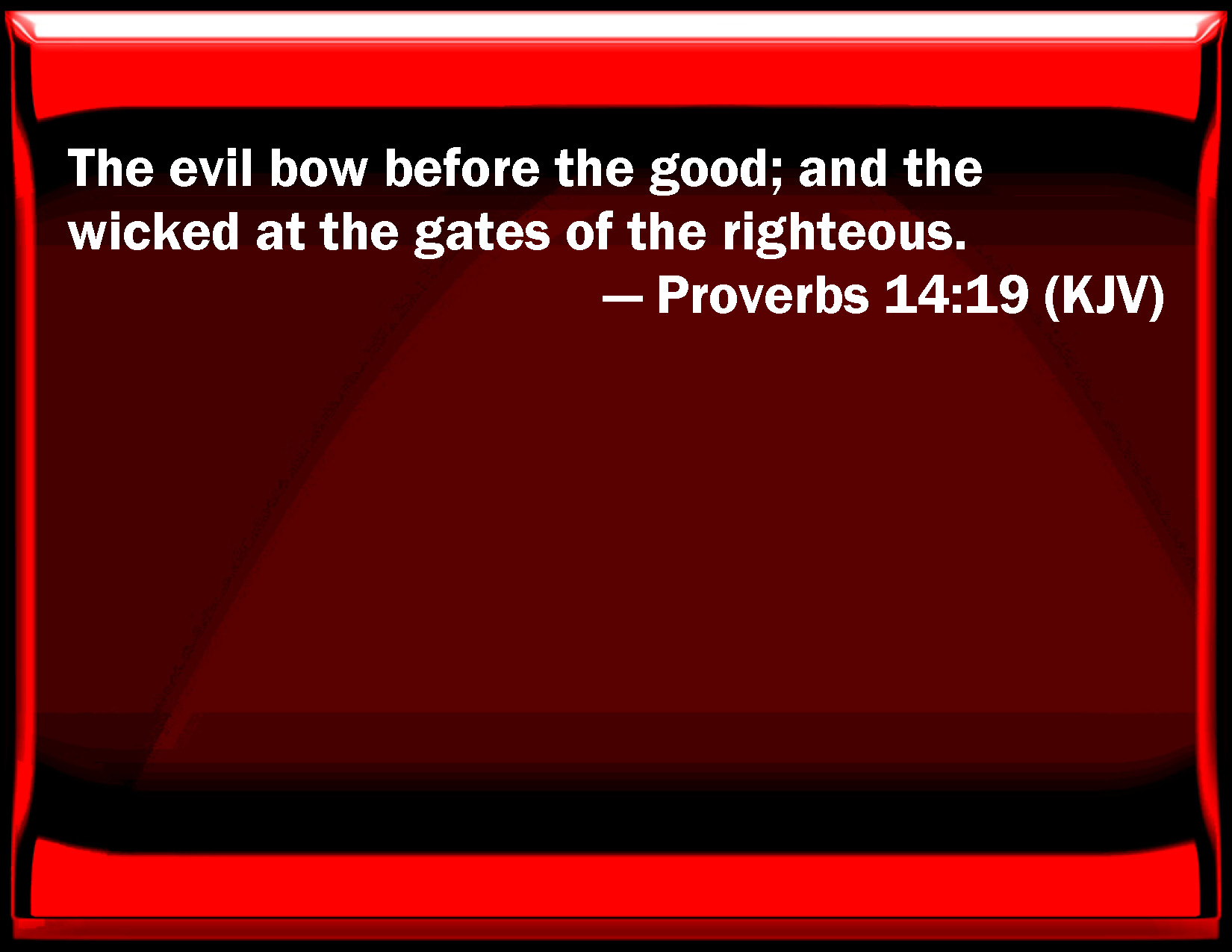 Proverbs 14:19 The evil bow before the good; and the wicked at the gates of the righteous.