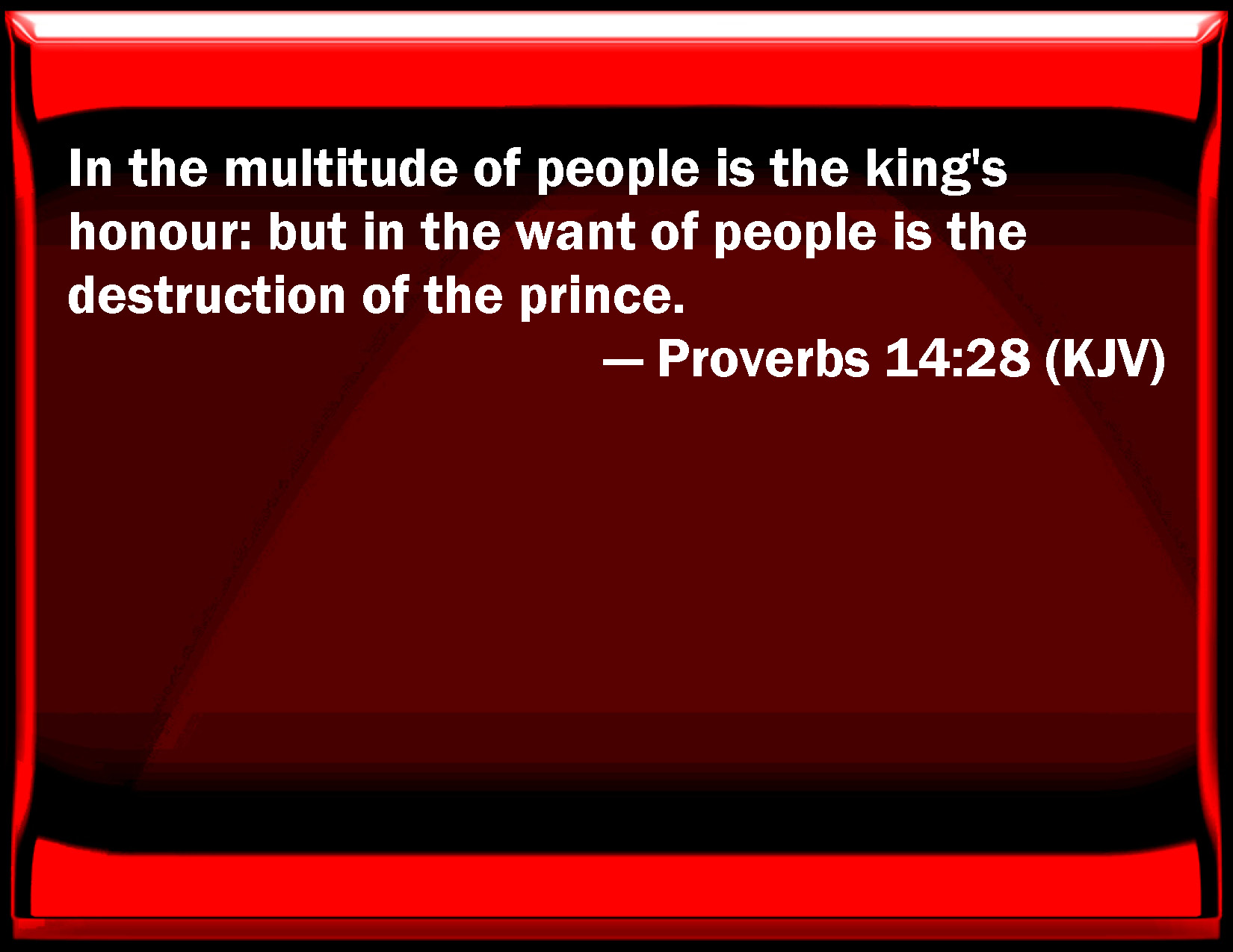 Proverbs 14:28 In the multitude of people is the king's honor: but in the want of people is the destruction of the prince.