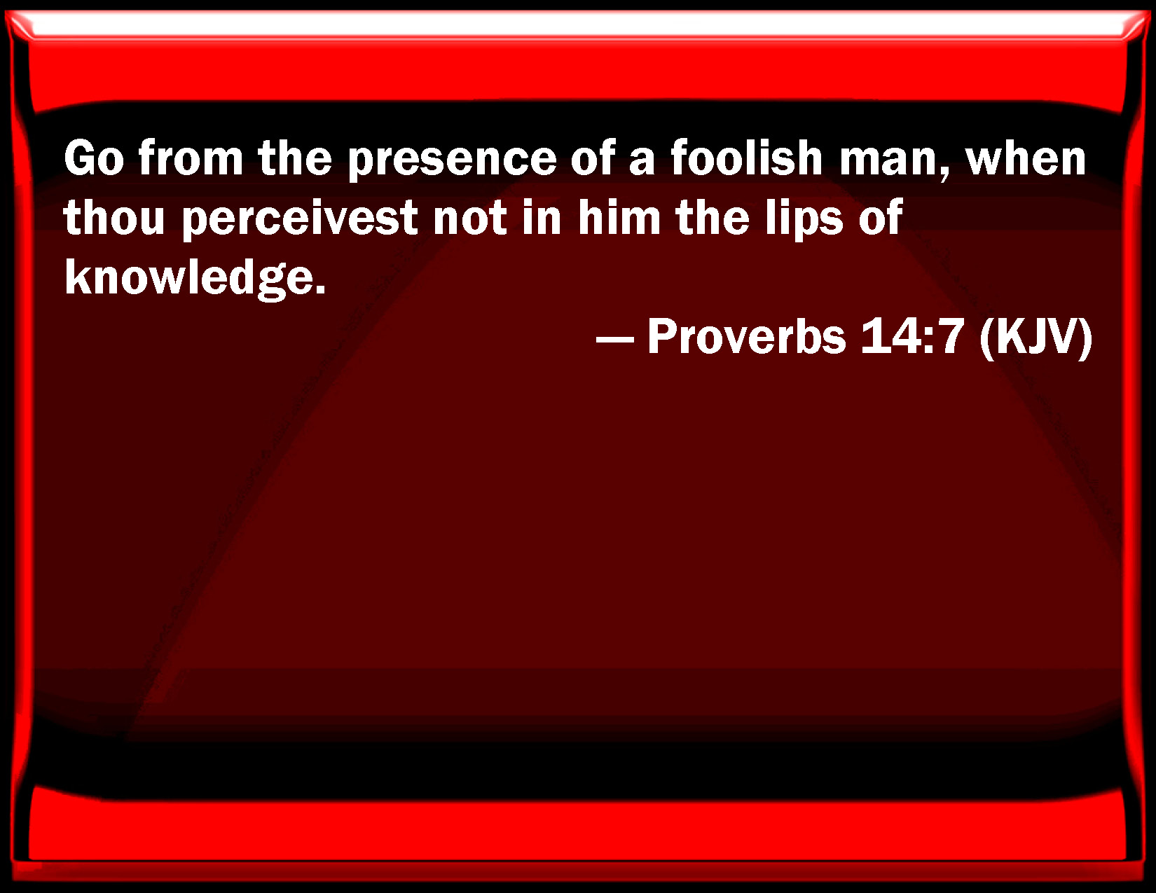 Proverbs 14:7 Go from the presence of a foolish man, when you perceive not in him the lips of knowledge.