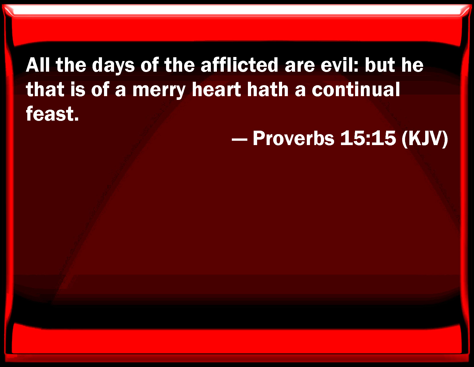 Proverbs 15:15 All the days of the afflicted are evil: but he that is of a merry heart has a continual feast.