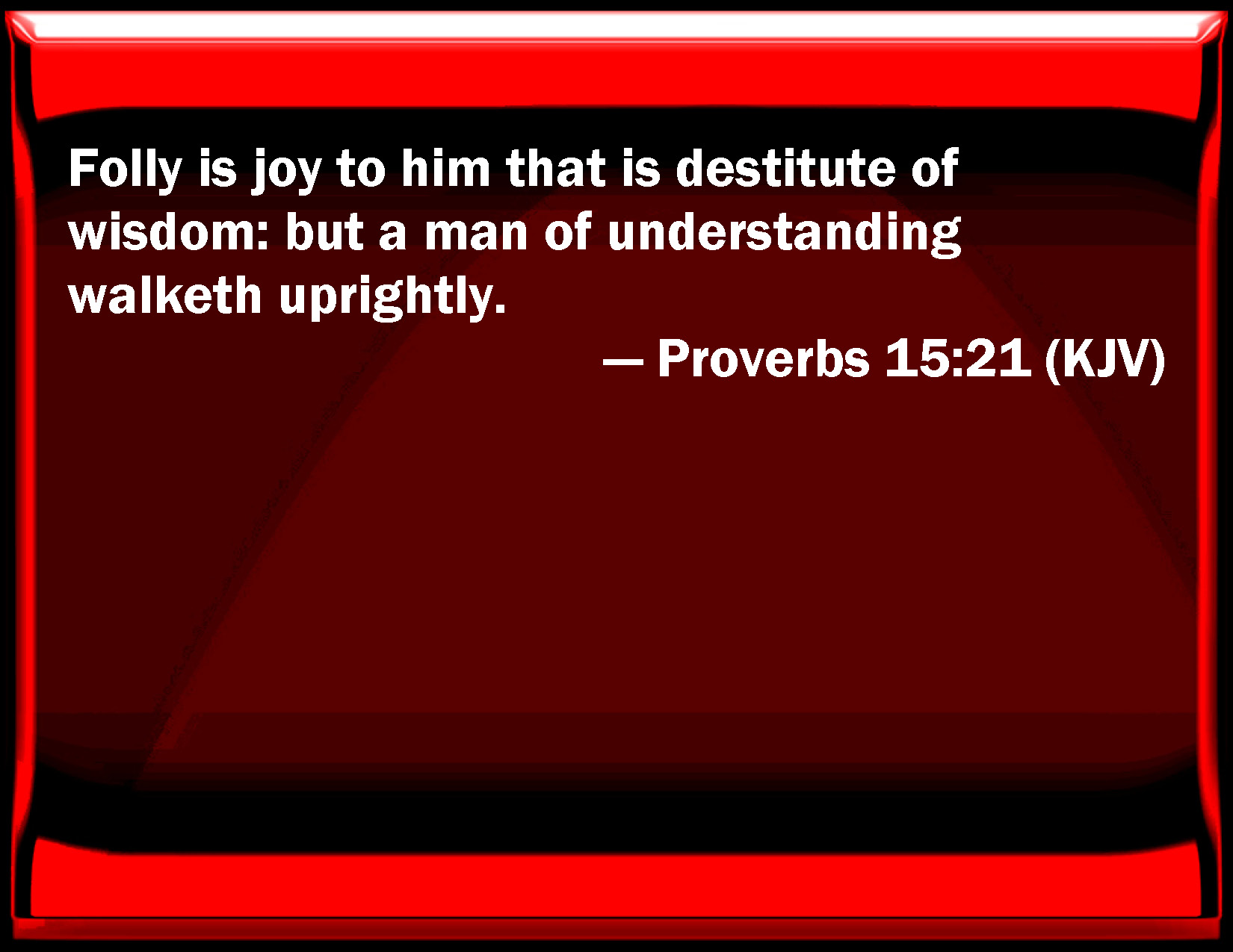 Proverbs 15:21 Folly is joy to him that is destitute of wisdom: but a man of understanding walks uprightly.