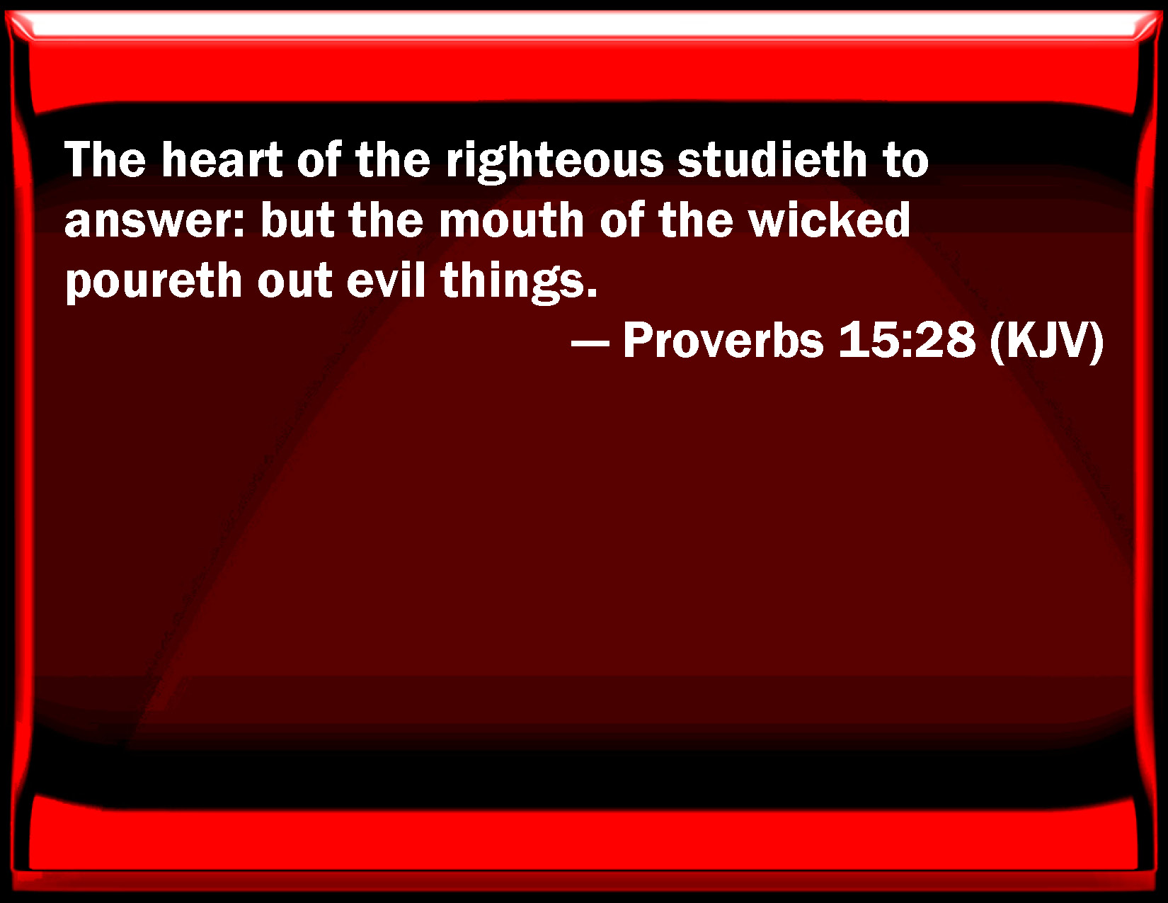 Proverbs 15:28 The heart of the righteous studies to answer: but the mouth of the wicked pours out evil things.