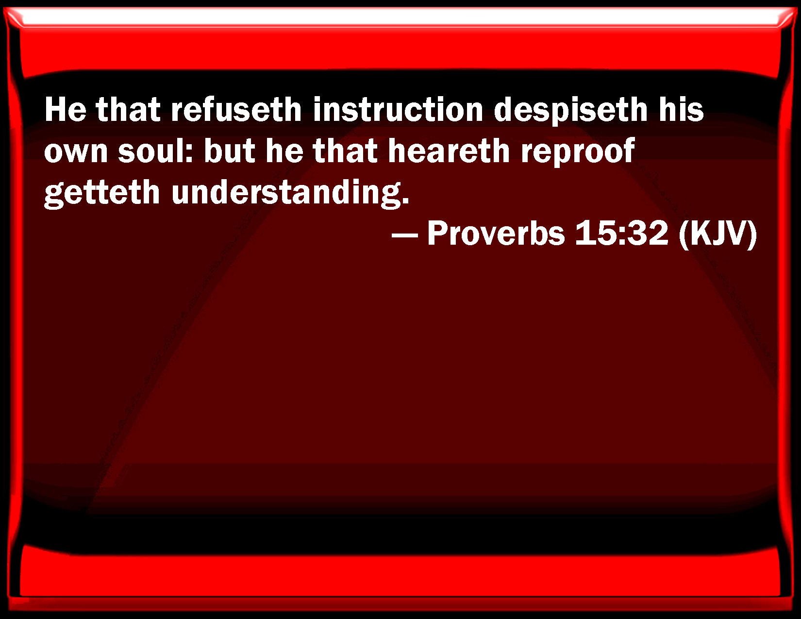 He that refuseth instruction despiseth his own soul: but he that heareth reproof getteth understanding.
