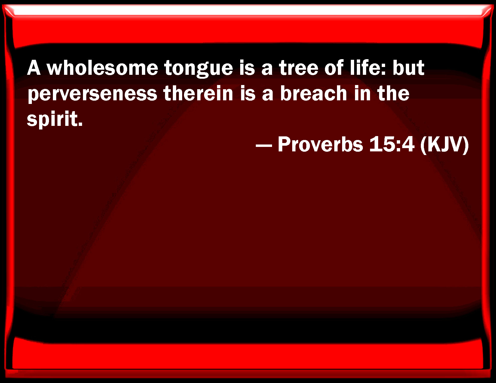 Proverbs 15:4 A wholesome tongue is a tree of life: but perverseness therein is a breach in the spirit.