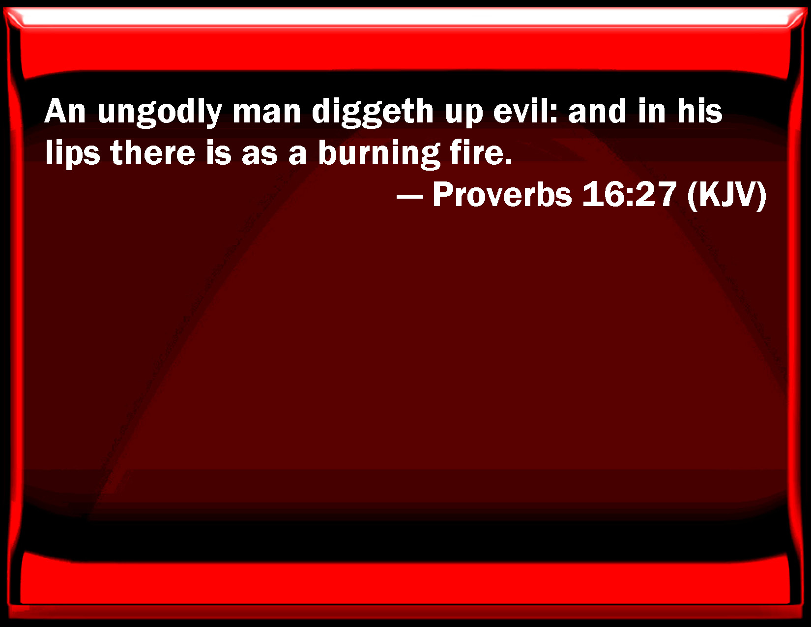 Proverbs 16:27 An ungodly man digs up evil: and in his lips there is as a burning fire.