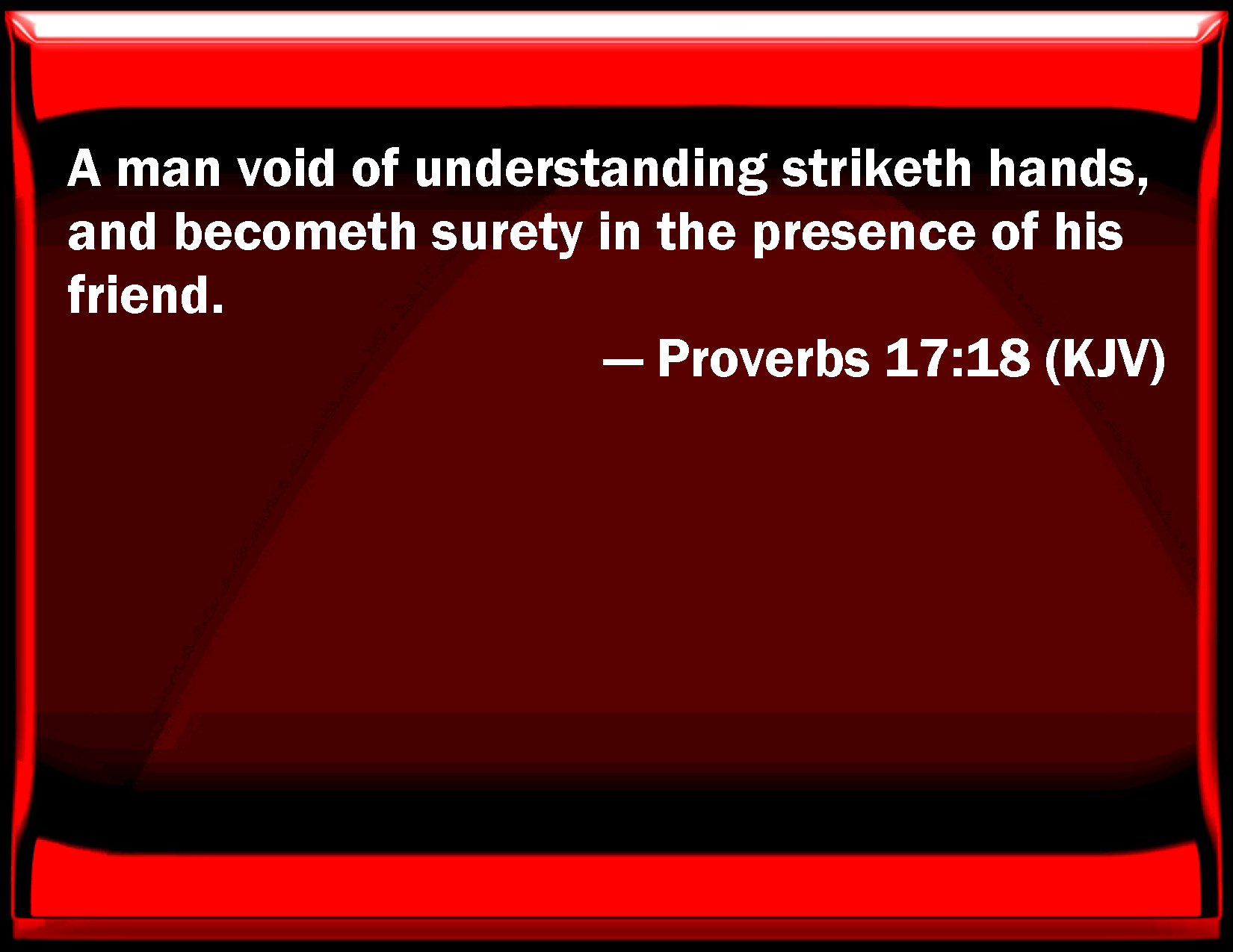 Proverbs 17:18 A man void of understanding strikes hands, and becomes surety in the presence of his friend.