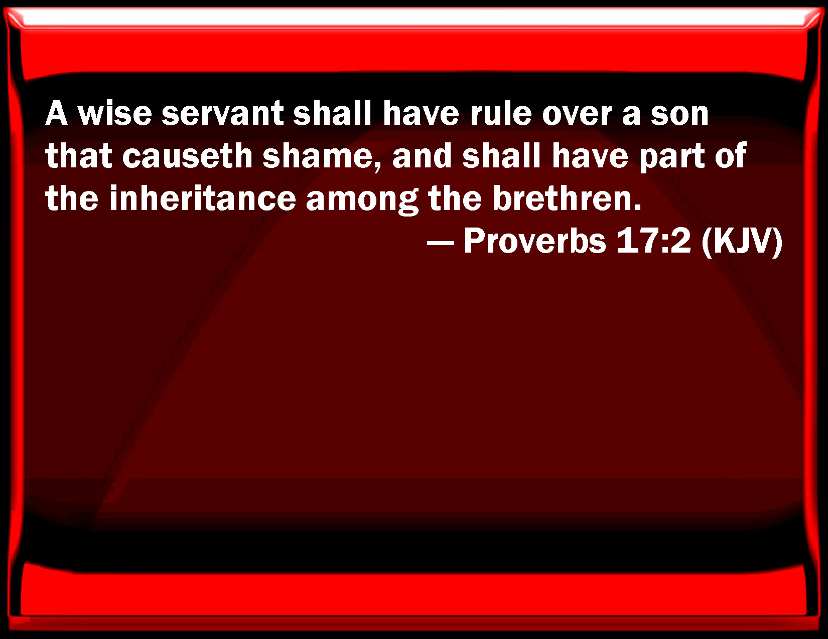 Proverbs 17:2 A wise servant shall have rule over a son that causes shame, and shall have part of the inheritance among the brothers.