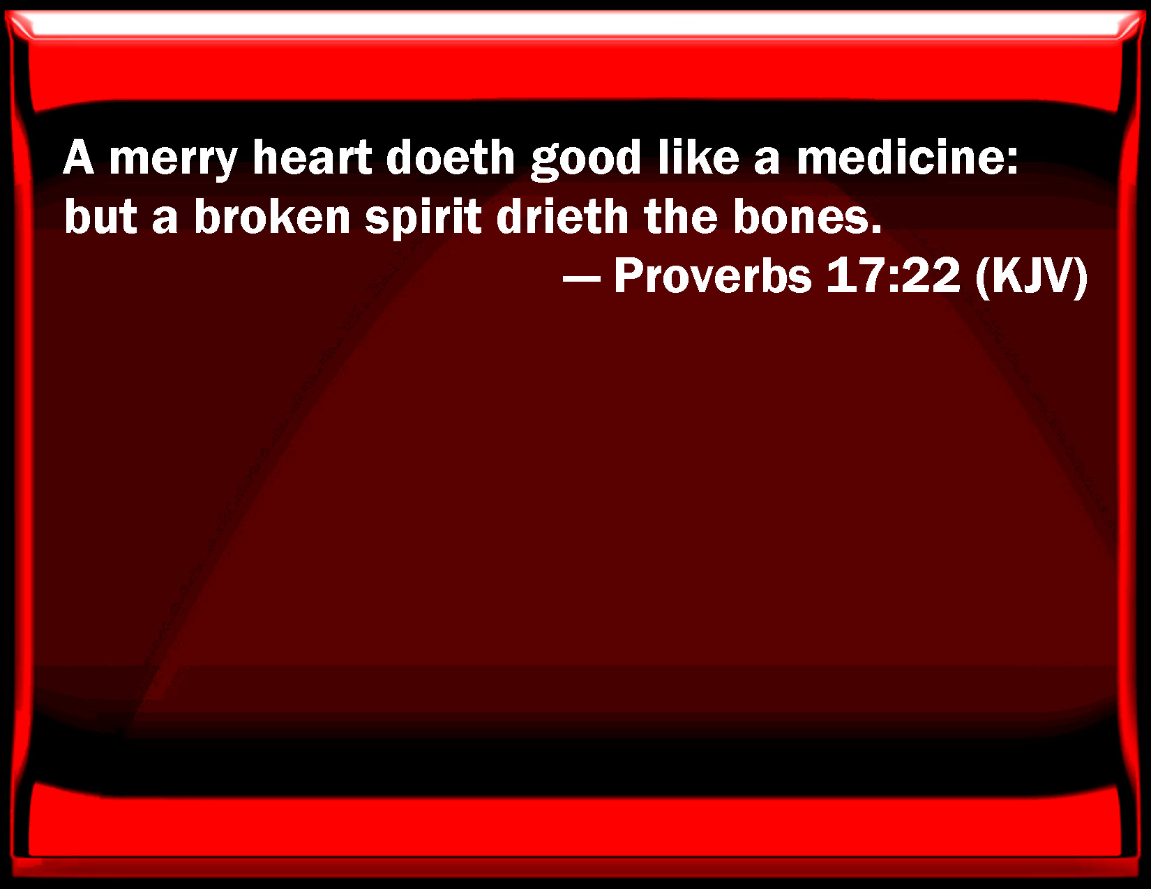 Proverbs 17:22 A merry heart does good like a medicine: but a broken spirit dries the bones.