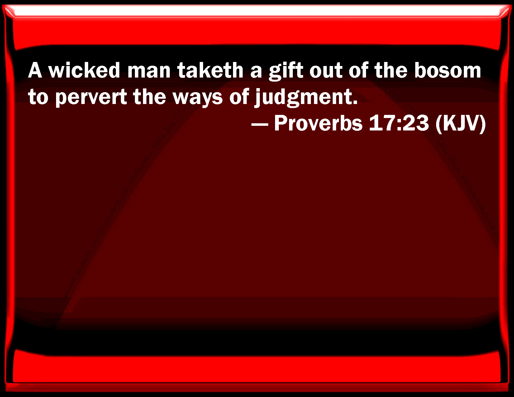 Proverbs 17:23 A wicked man takes a gift out of the bosom to pervert the ways of judgment.