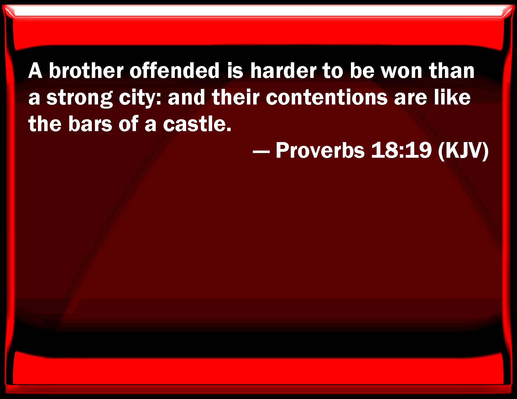Proverbs 18:19 A brother offended is harder to be won than a strong city: and their contentions are like the bars of a castle.