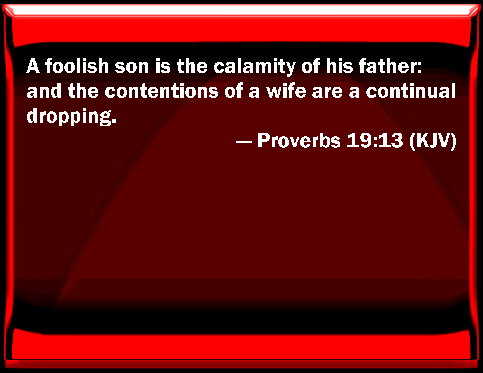 Proverbs 19:13 A foolish son is the calamity of his father: and the contentions of a wife are a continual dropping.