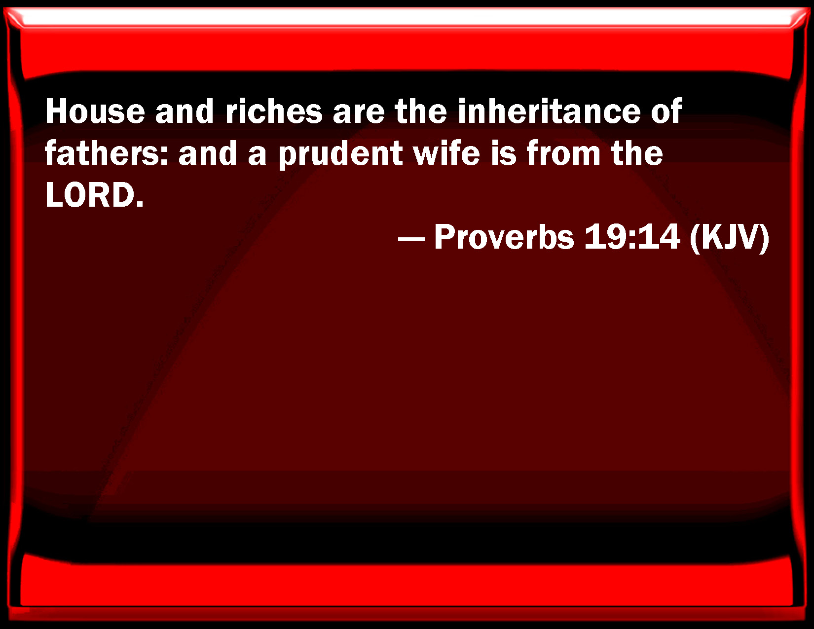 Proverbs 19:14 House and riches are the inheritance of fathers: and a prudent wife is from the LORD.