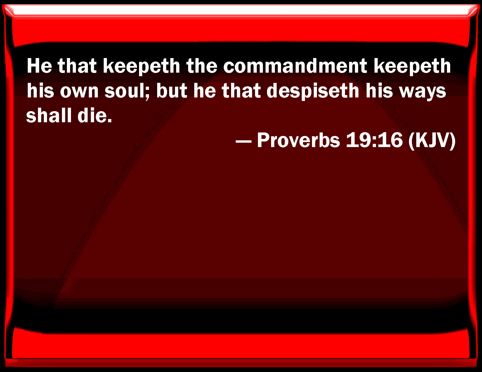Proverbs 19:16 He that keeps the commandment keeps his own soul; but he that despises his ways shall die.