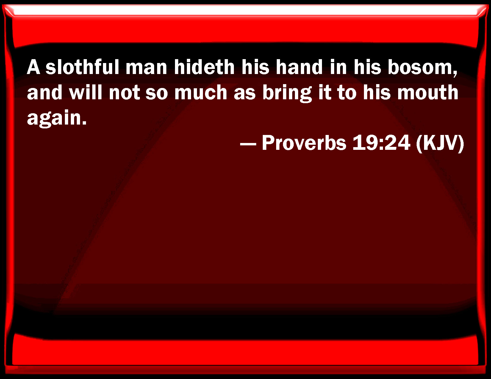 Proverbs 19:24 A slothful man hides his hand in his bosom, and will not so much as bring it to his mouth again.