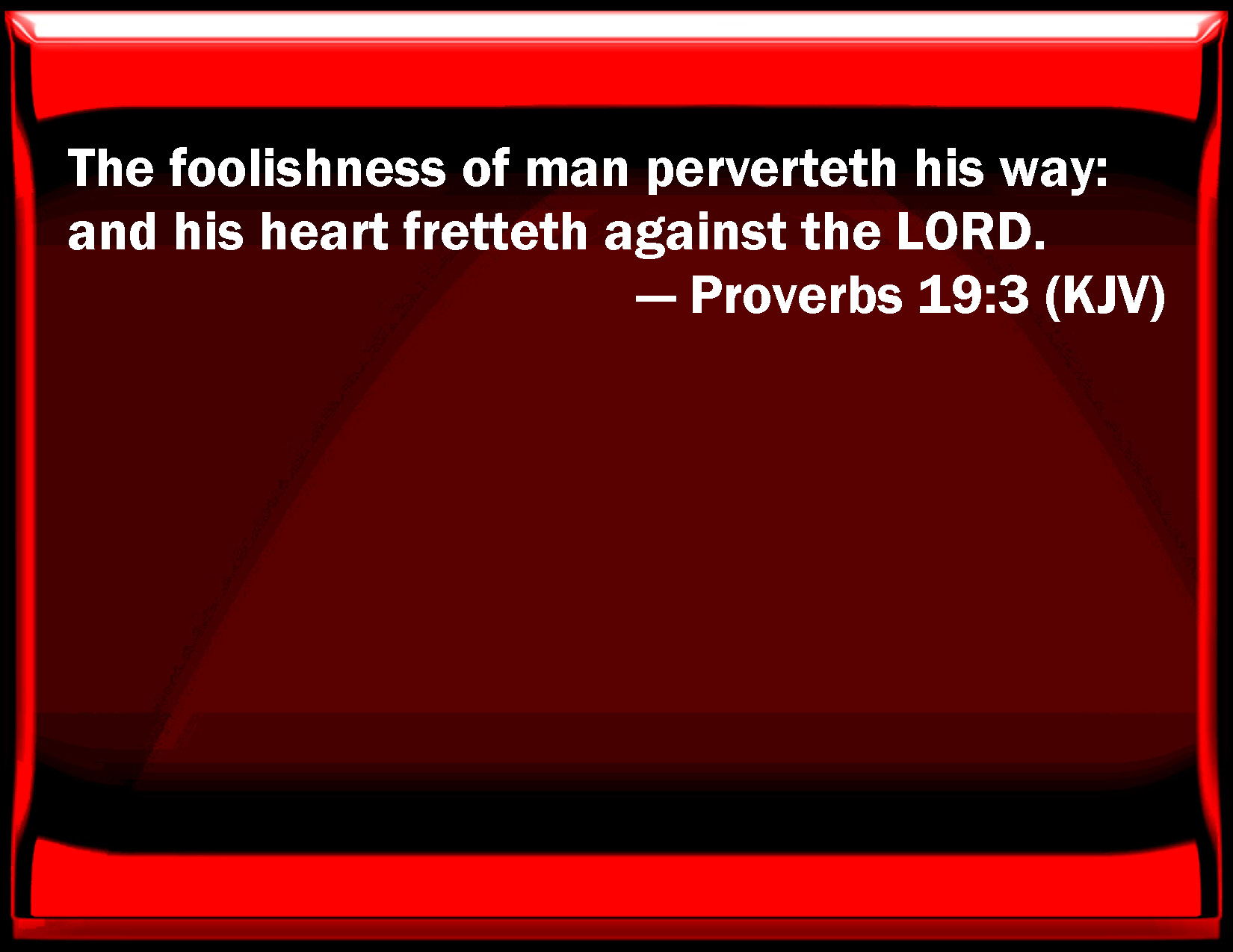Proverbs 19:3 The foolishness of man perverts his way: and his heart frets against the LORD.