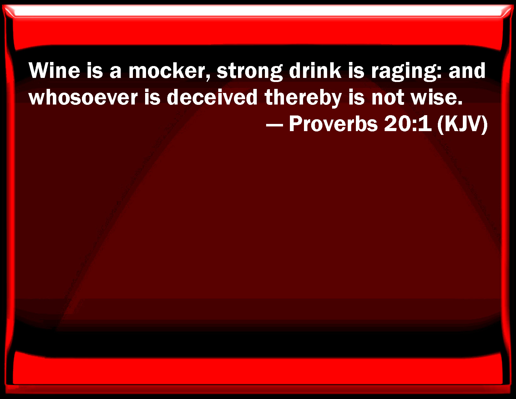 Proverbs 20:1 Wine is a mocker, strong drink is raging: and whoever is deceived thereby is not wise.