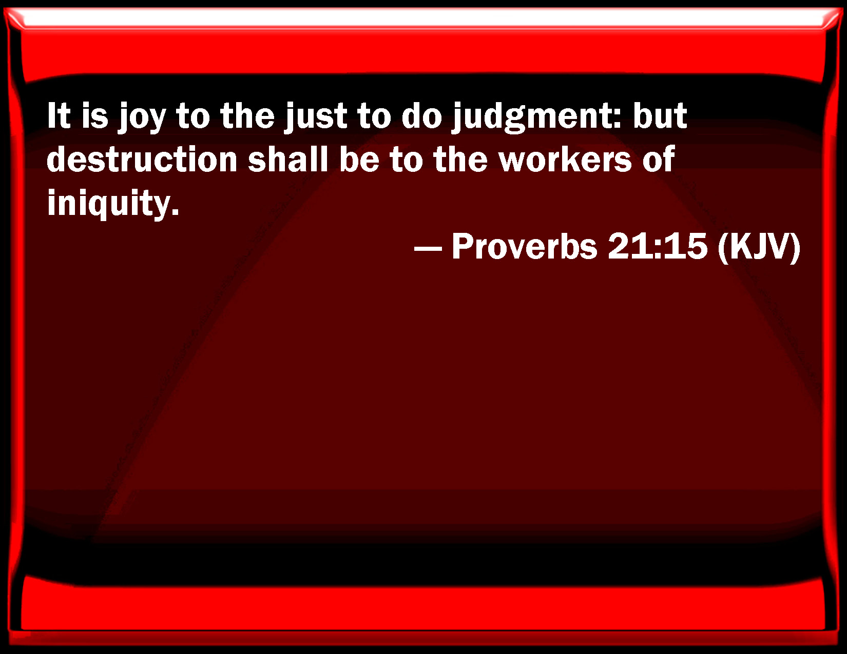 Proverbs 21:15 It is joy to the just to do judgment: but destruction shall be to the workers of iniquity.