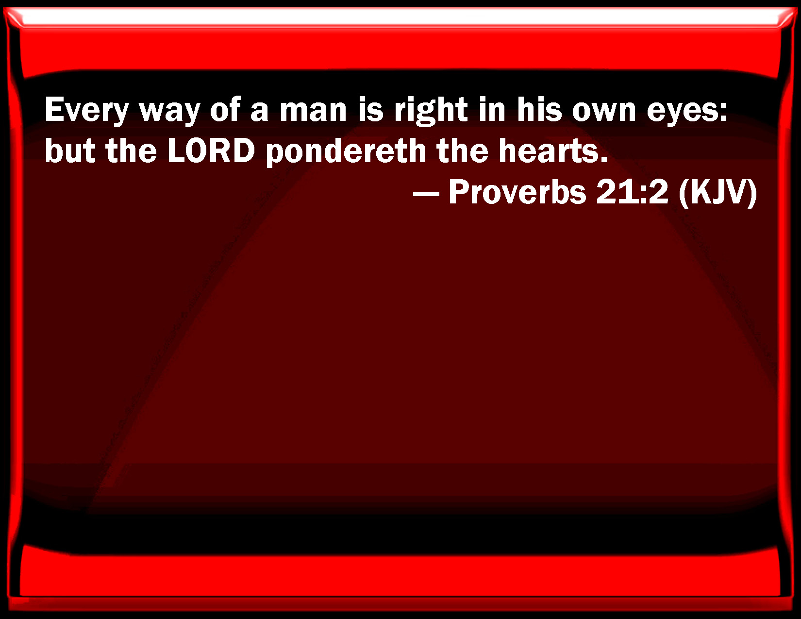 Proverbs 21:2 Every way of a man is right in his own eyes: but the LORD ponders the hearts.