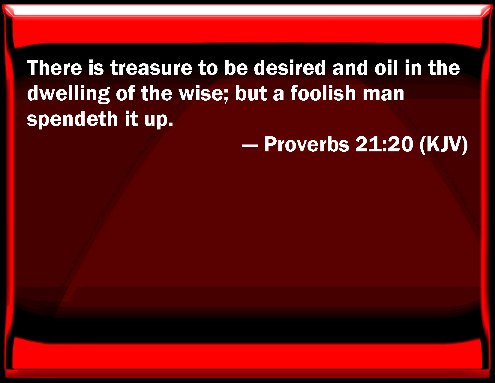 There is precious treasure and oil in the dwelling of the wise; but a foolish man swalloweth it up.