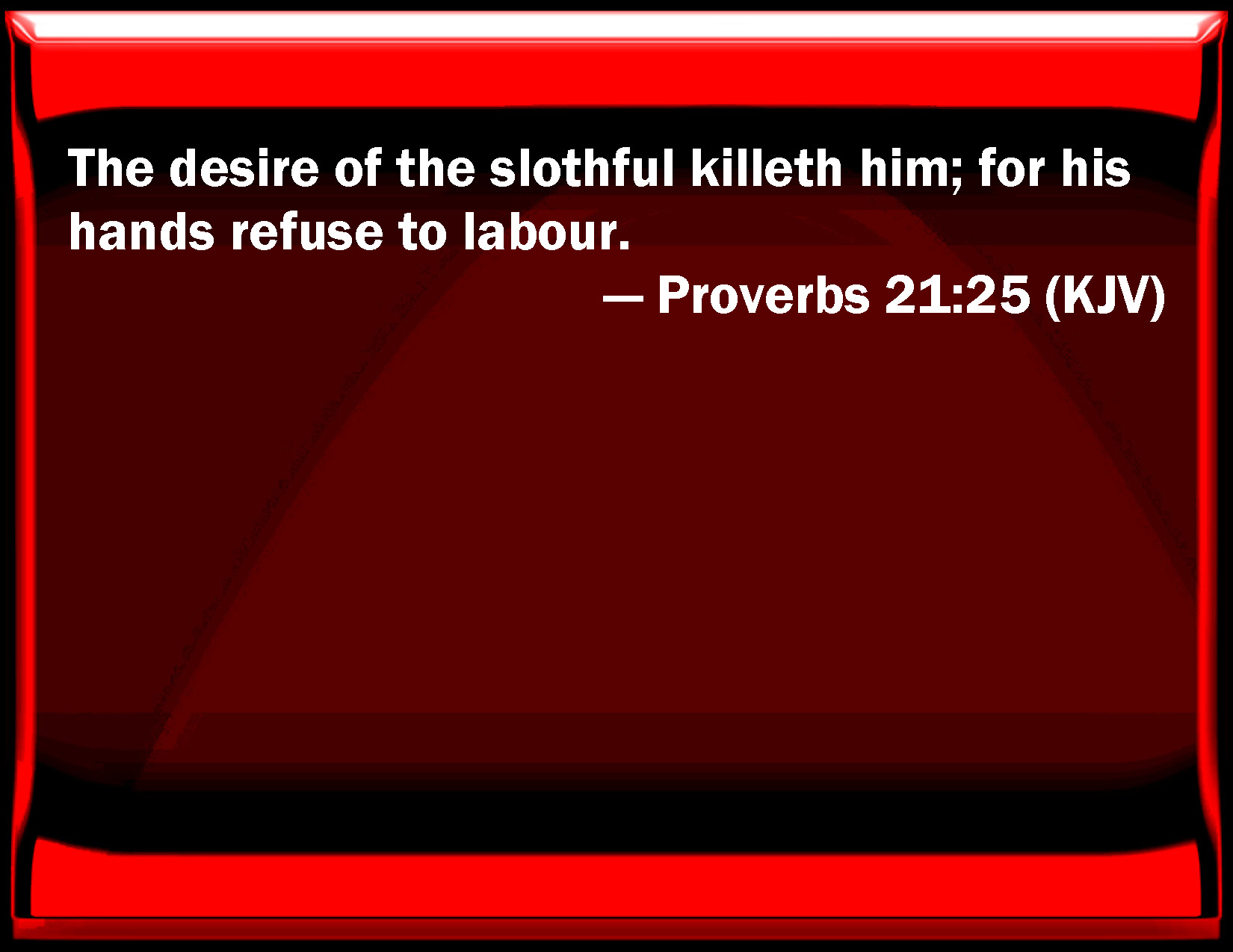 Proverbs 21:25 The desire of the slothful kills him; for his hands refuse to labor.