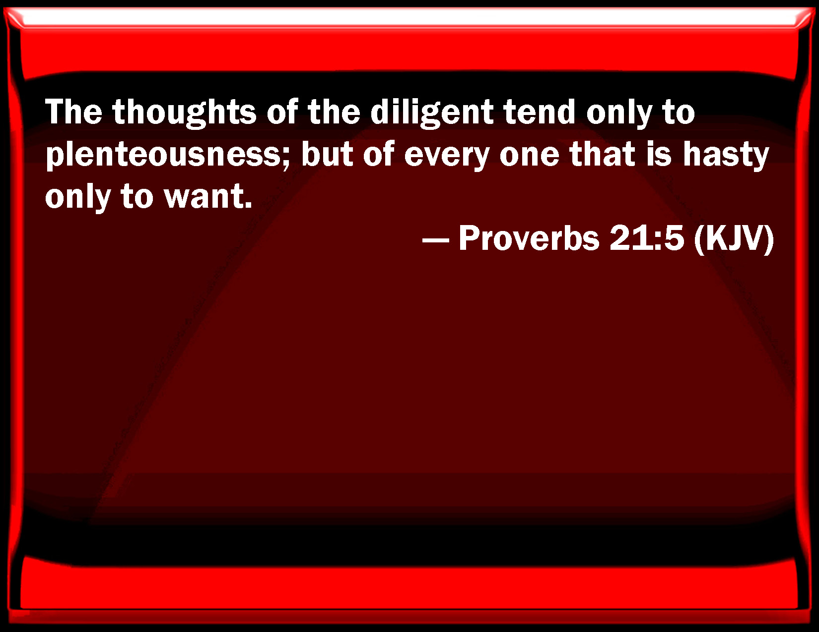 Proverbs 21:5 The thoughts of the diligent tend only to plenty; but of every one that is hasty only to want.