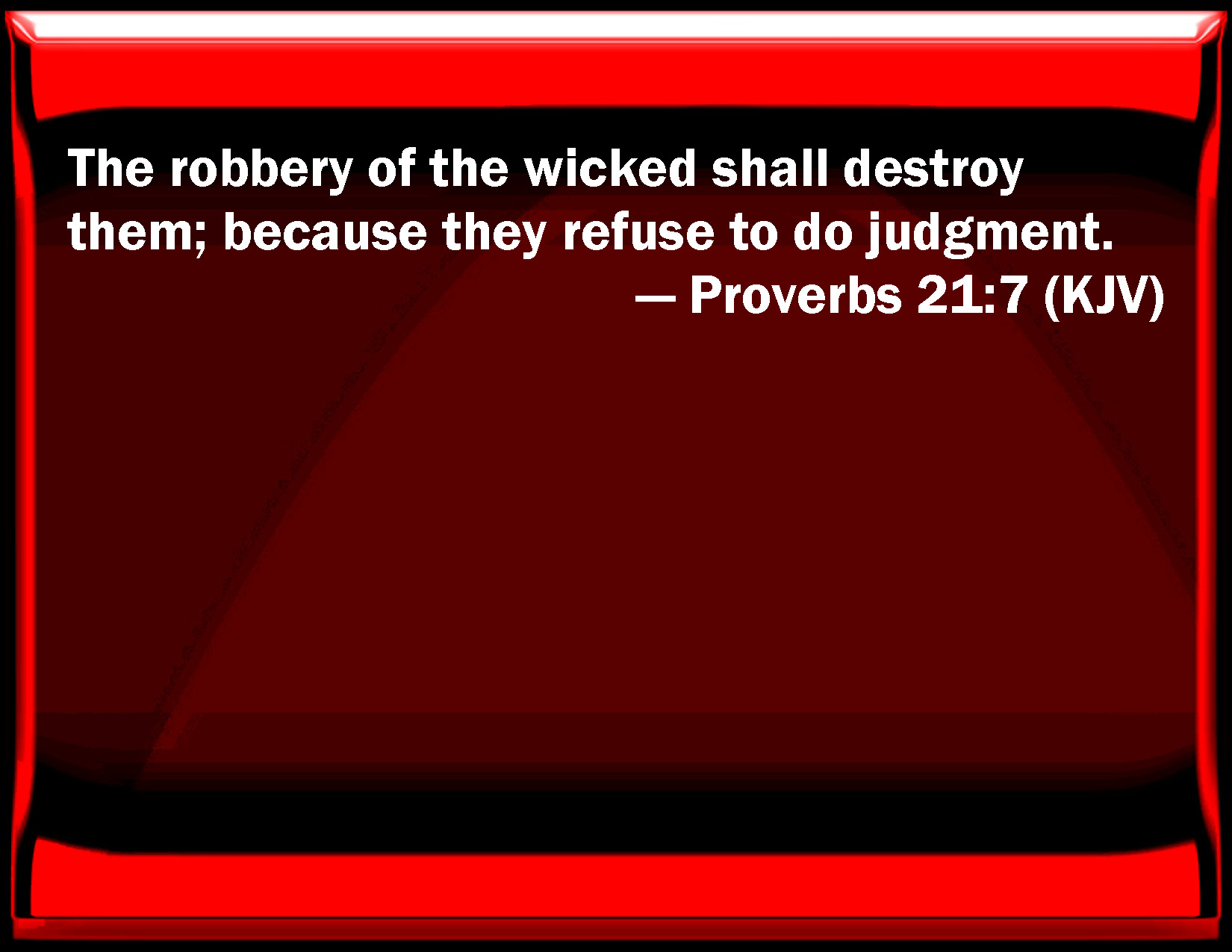 Proverbs 21:7 The robbery of the wicked shall destroy them; because they refuse to do judgment.