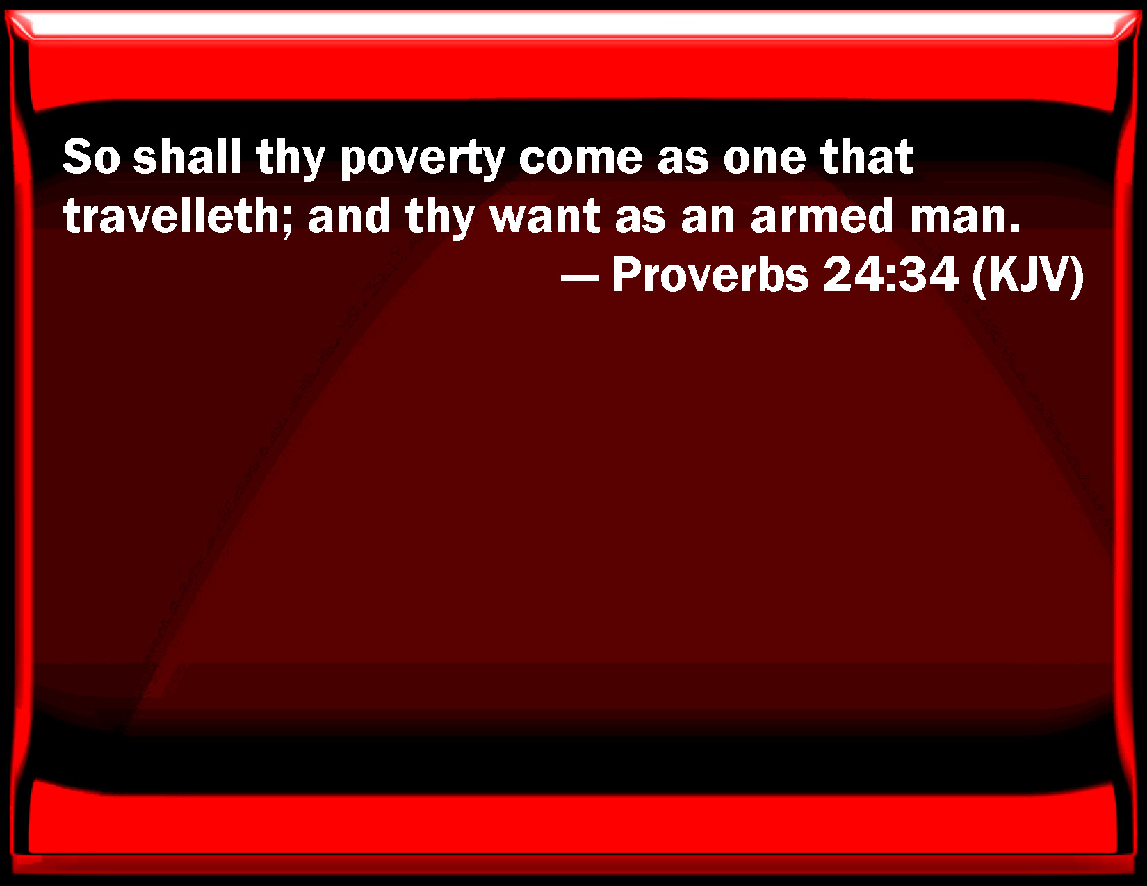 Proverbs 24:34 So shall your poverty come as one that travels; and your want as an armed man.