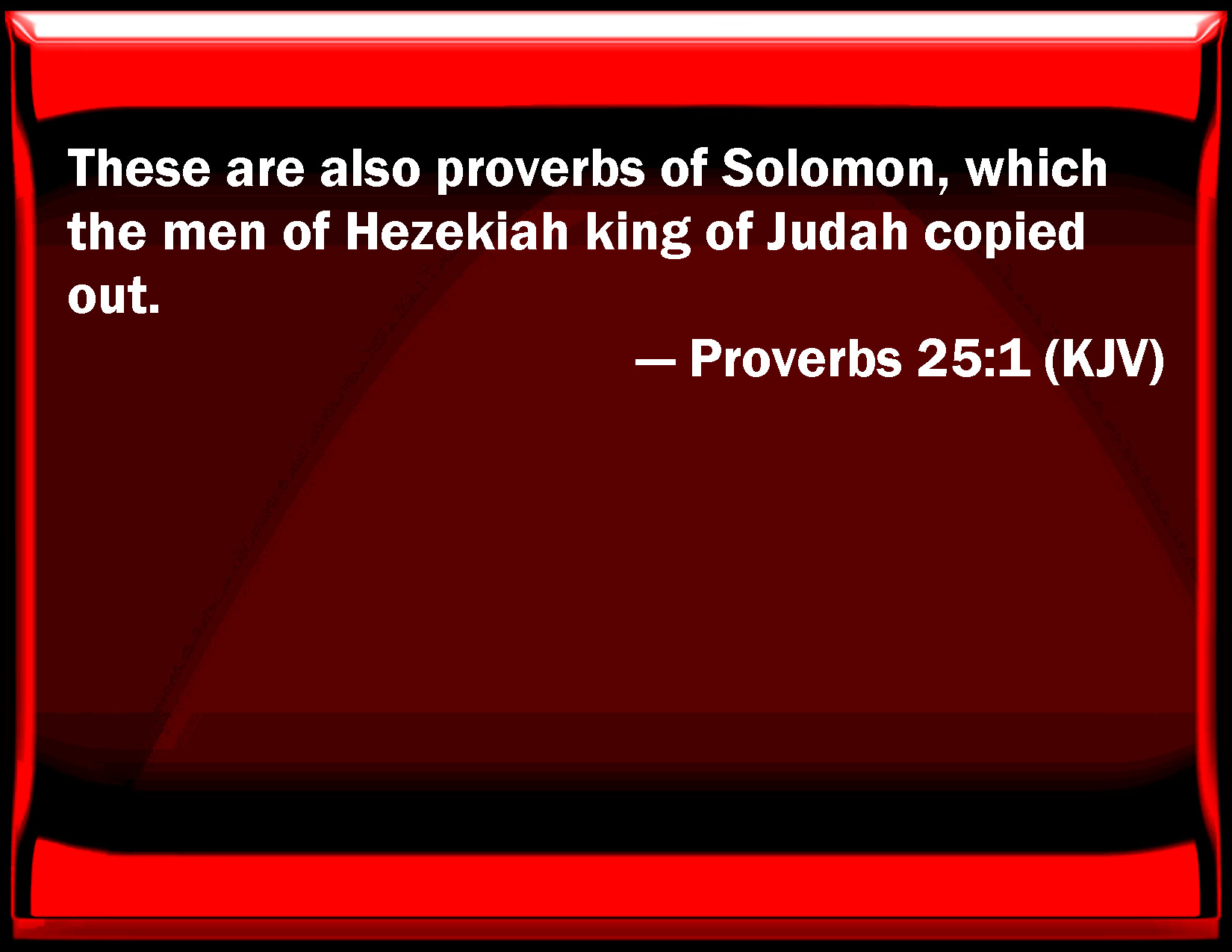 Proverbs 25:1 These are also proverbs of Solomon, which the men of Hezekiah king of Judah copied out.