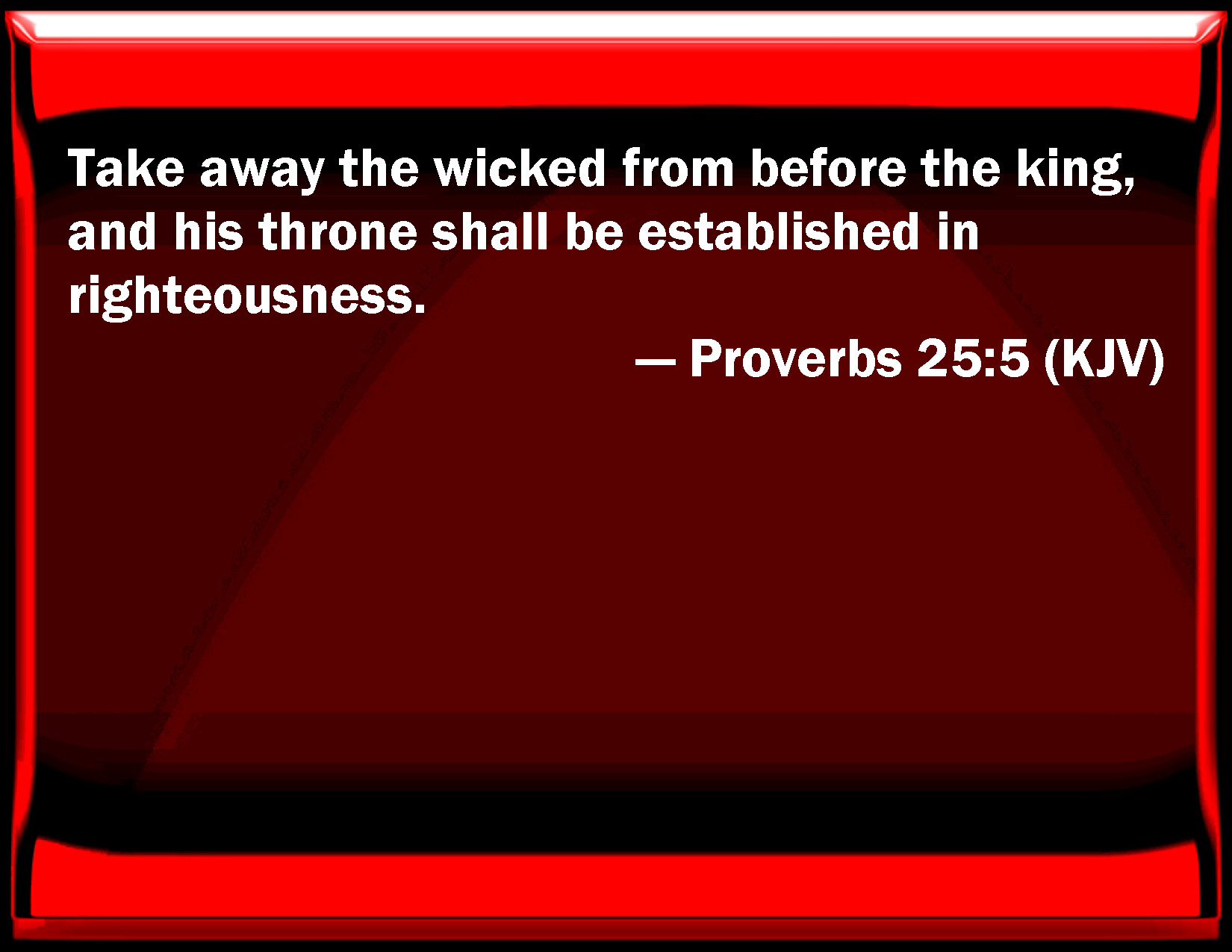 Proverbs 25:5 Take away the wicked from before the king, and his throne shall be established in righteousness.