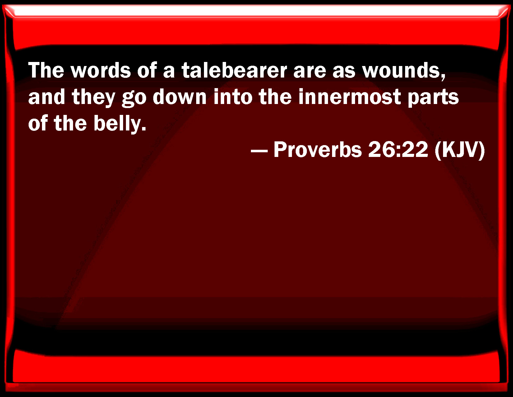 The words of a tale-bearer are as wounds, and they go down into the innermost parts of the belly.
