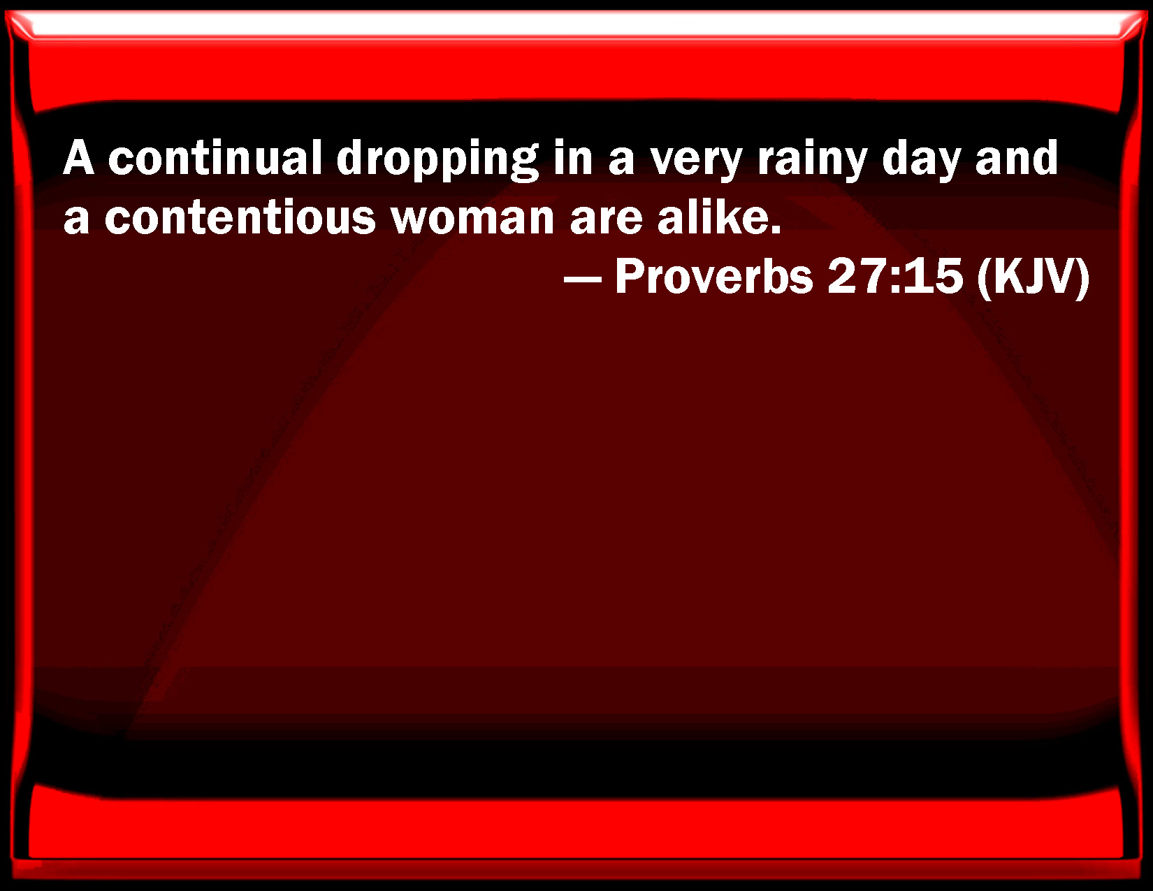 Proverbs 27:15 A continual dropping in a very rainy day and a contentious woman are alike.