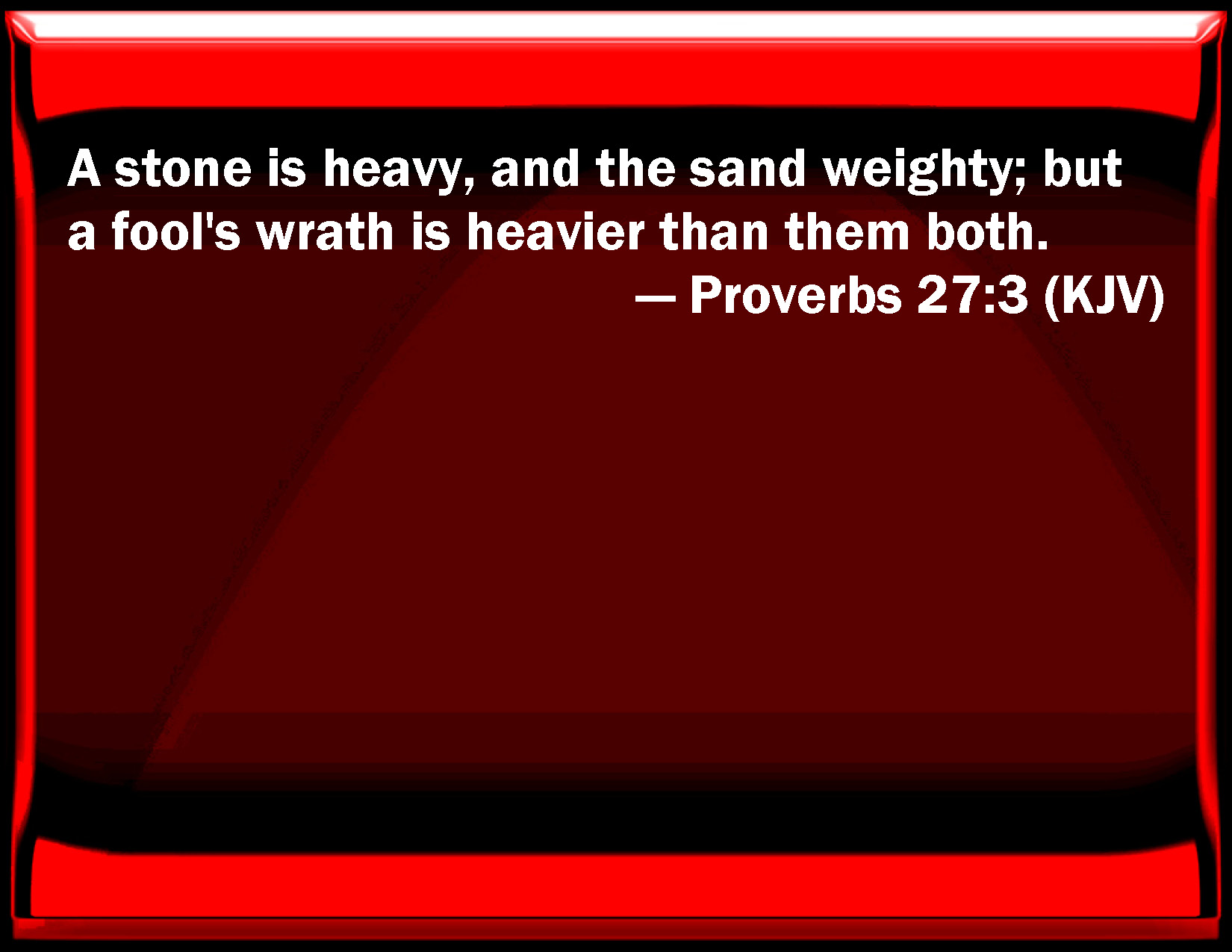 Proverbs 27:3 A stone is heavy, and the sand weighty; but a fool's wrath is heavier than them both.