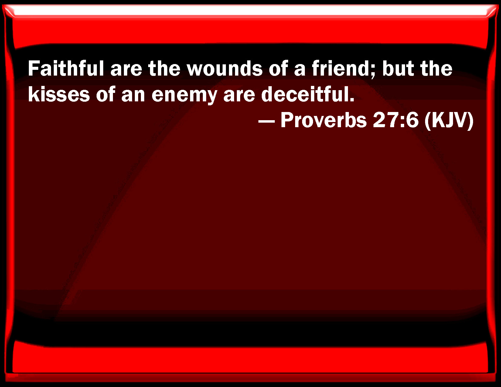 Proverbs 27:6 Faithful are the wounds of a friend; but the kisses of an enemy are deceitful.