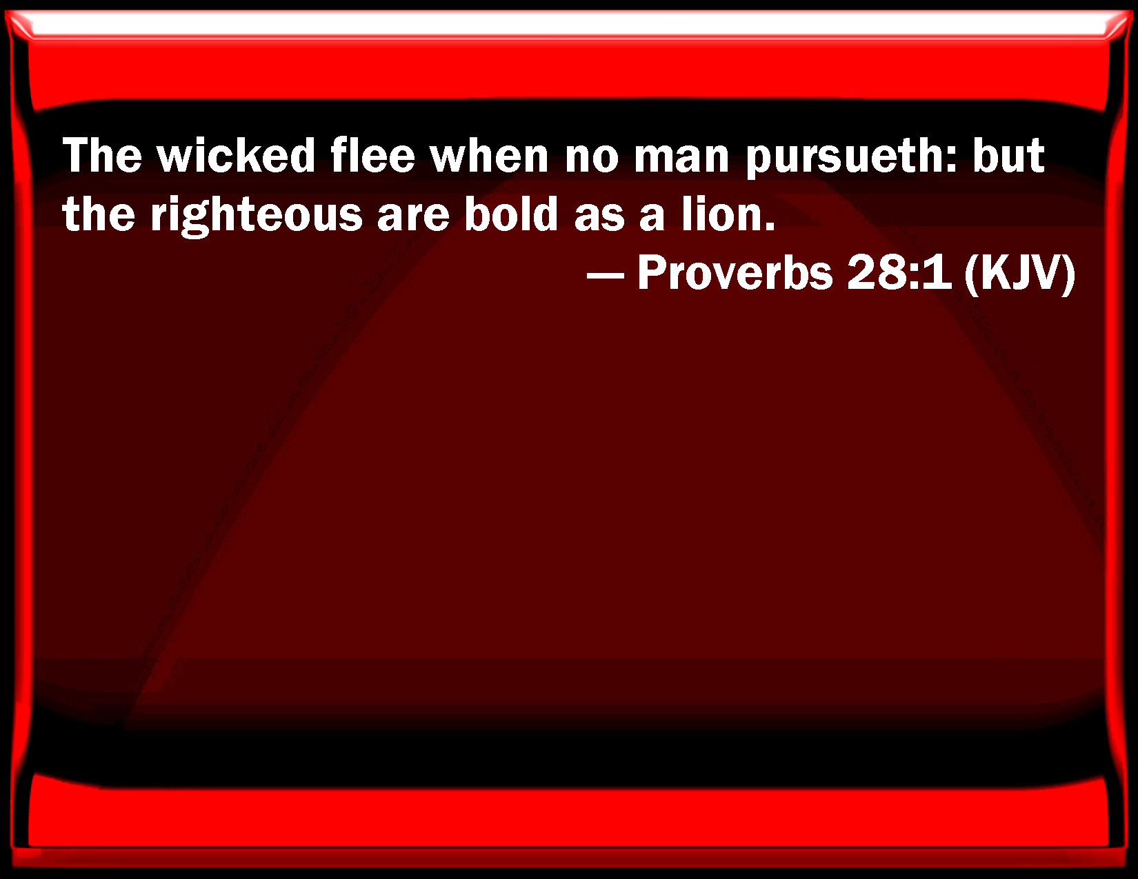 Proverbs 28:1 The wicked flee when no man pursues: but the righteous are bold as a lion.