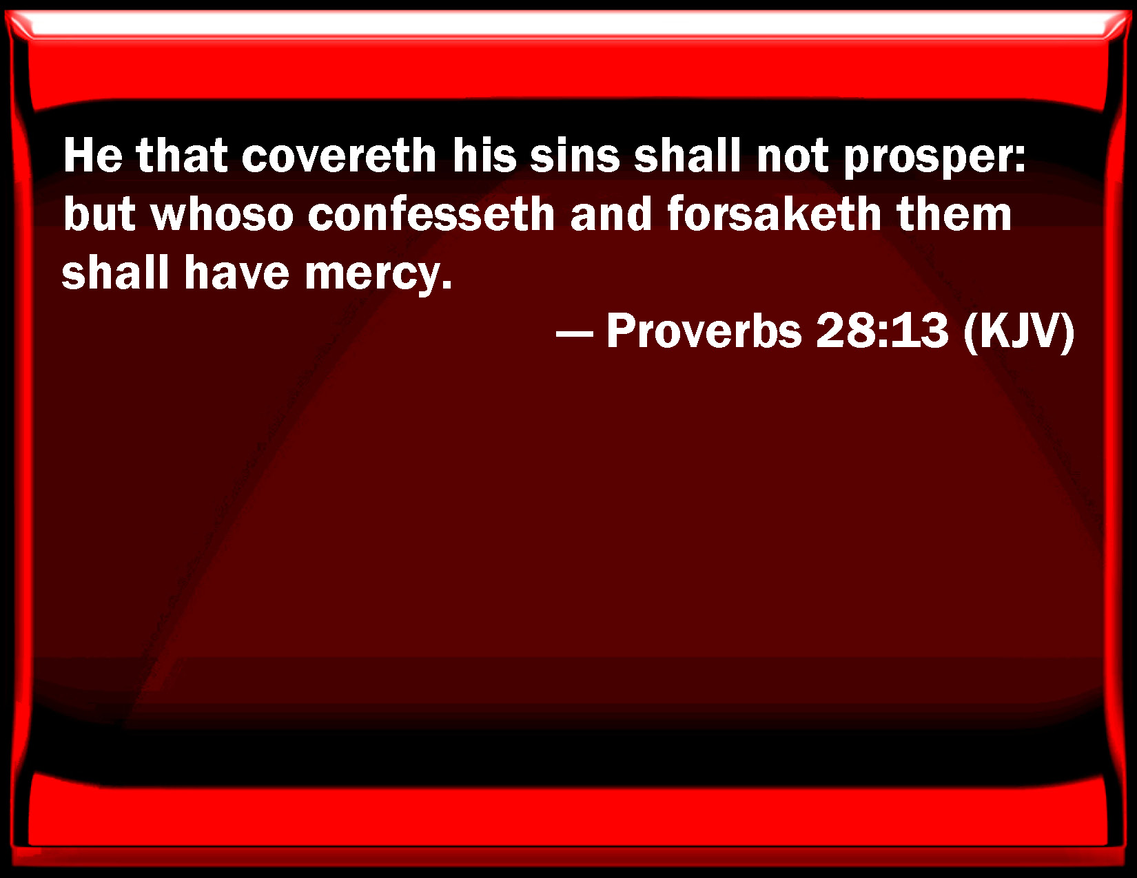 He that covereth his transgressions shall not prosper: but whoso confesseth and forsaketh them shall obtain mercy.