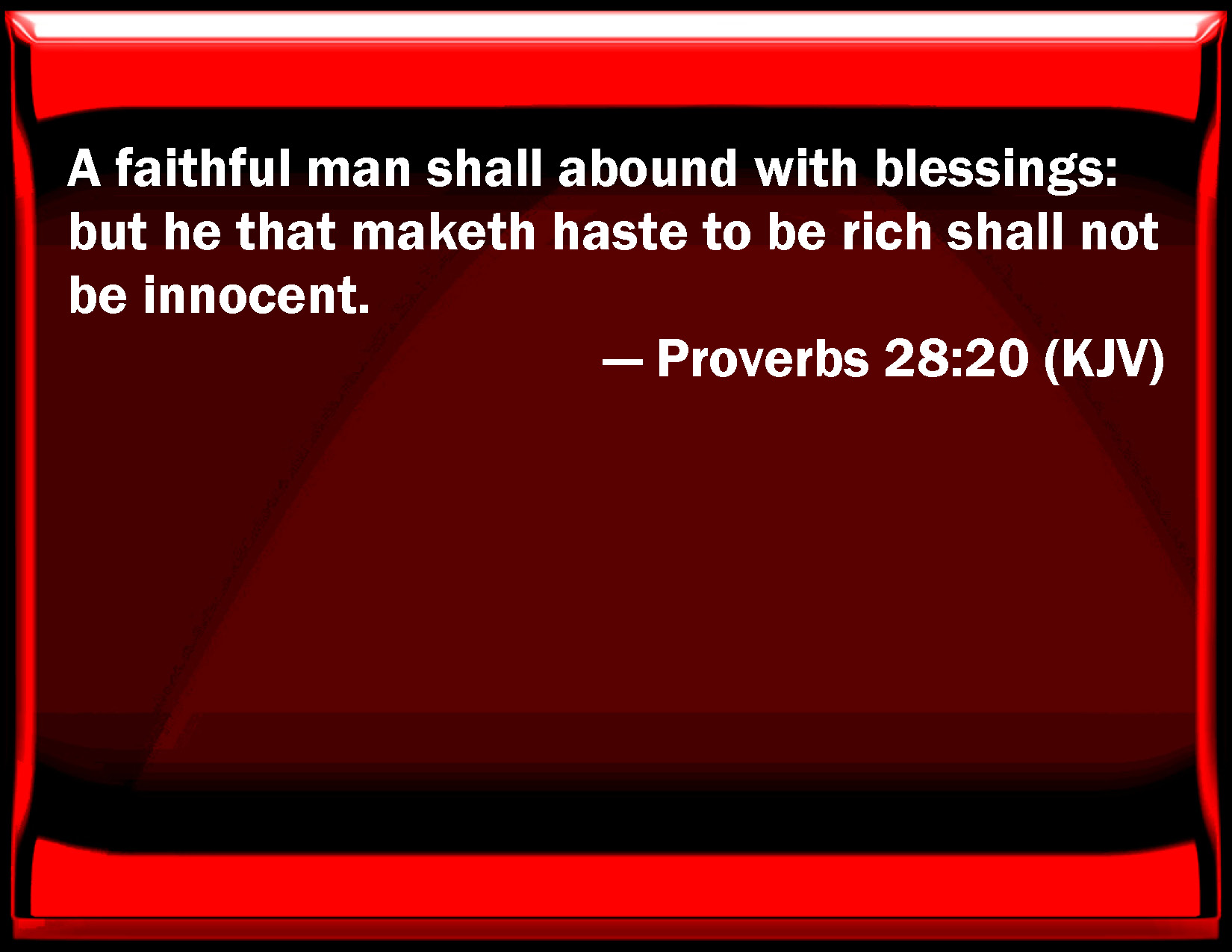 Proverbs 28:20 A faithful man shall abound with blessings: but he that makes haste to be rich shall not be innocent.