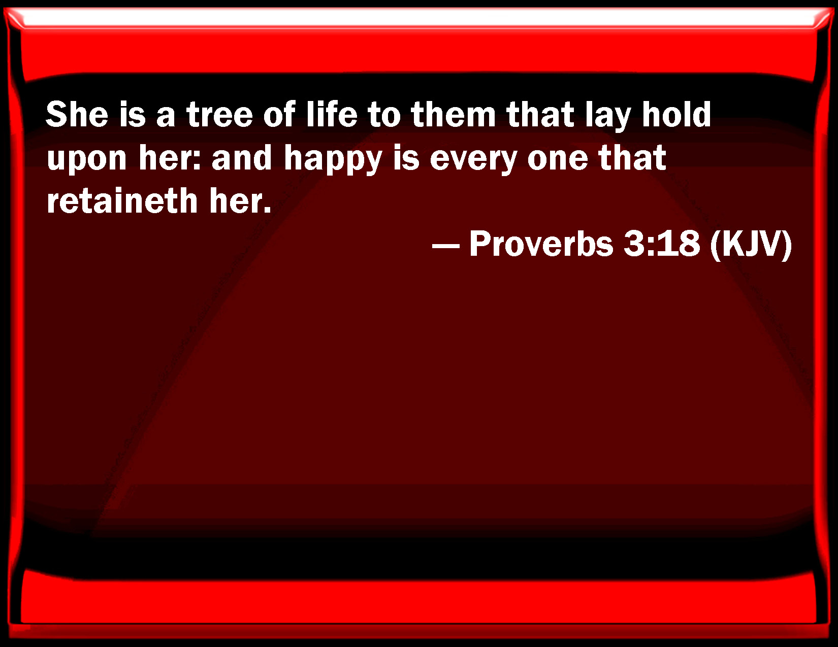 Proverbs 3:18 She is a tree of life to them that lay hold on her: and happy is every one that retains her.