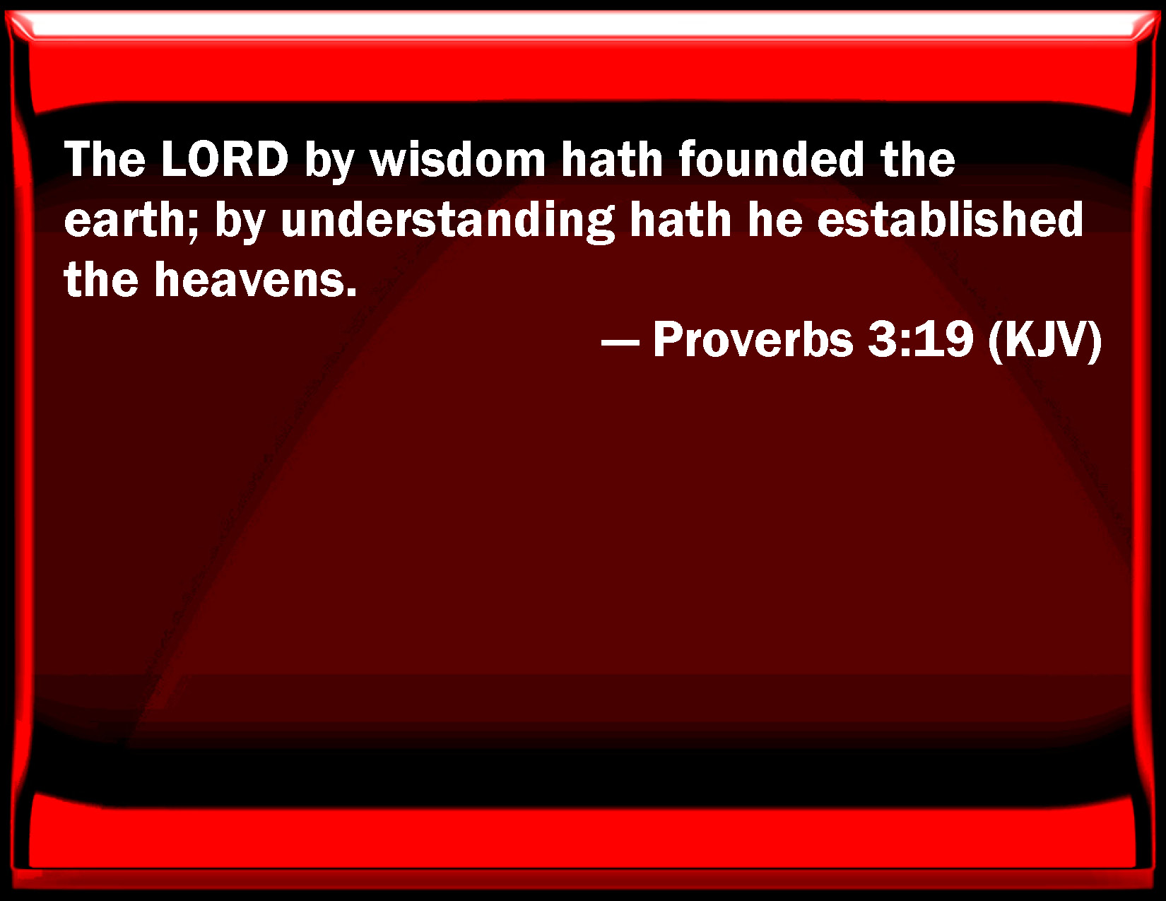 The LORD by wisdom hath founded the earth; by understanding hath he established the heavens.