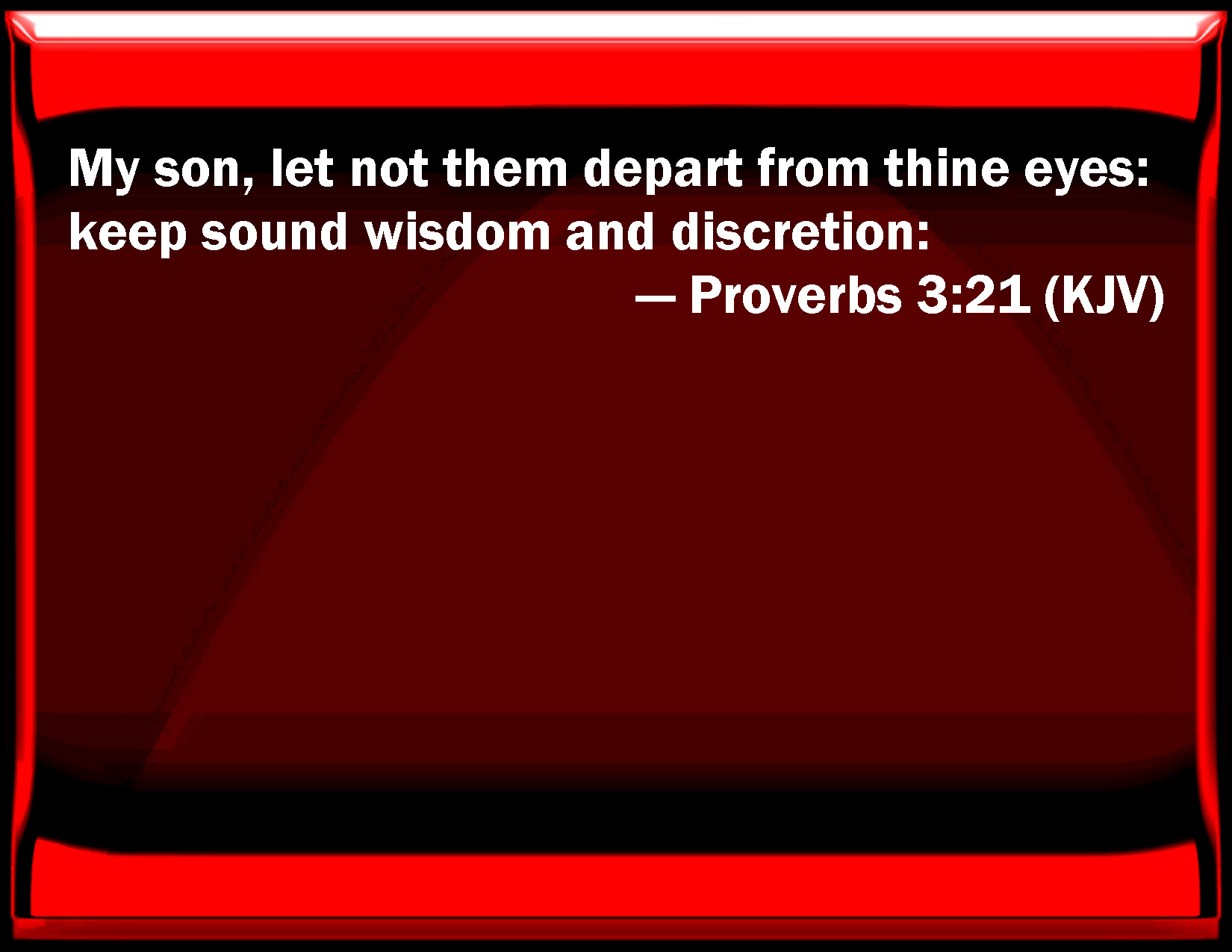 Proverbs 3:21 My son, let not them depart from your eyes: keep sound wisdom and discretion:
