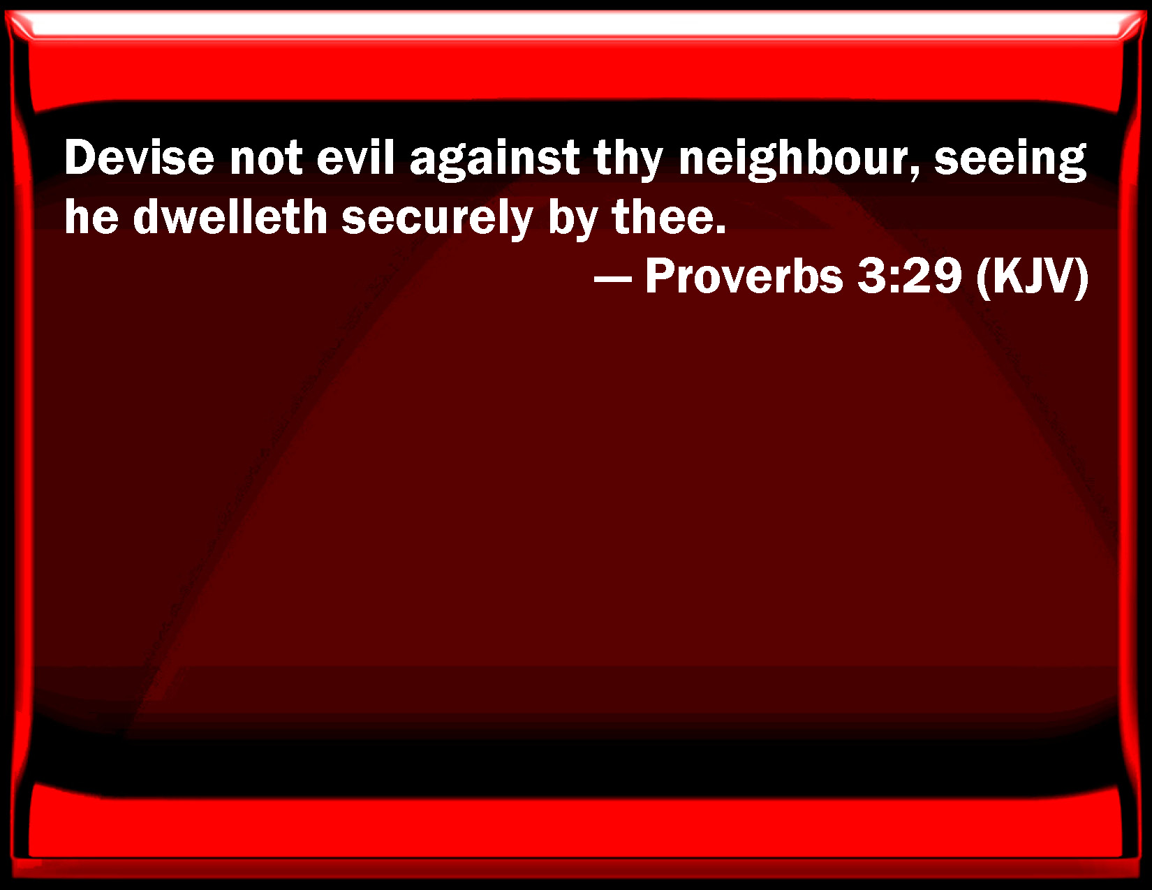 Proverbs 3:29 Devise not evil against your neighbor, seeing he dwells securely by you.