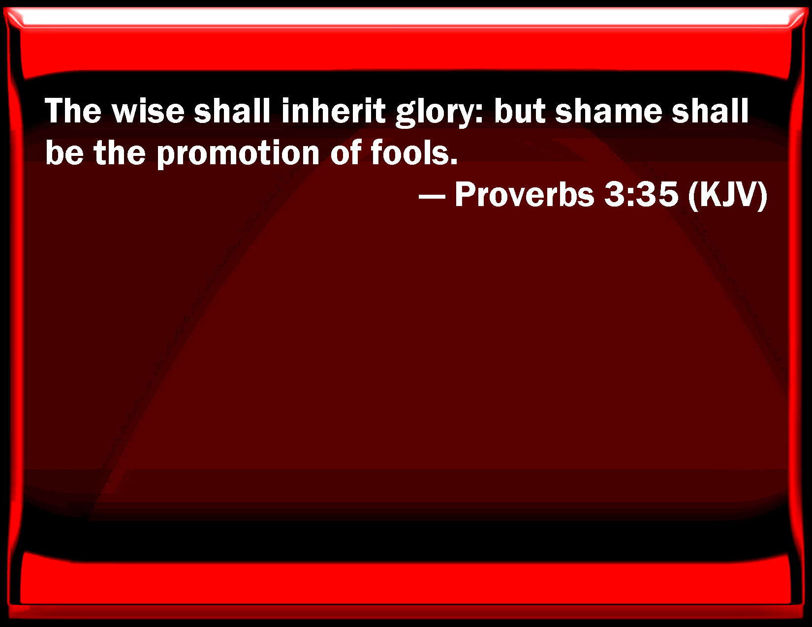Proverbs 3:35 The wise shall inherit glory: but shame shall be the promotion of fools.
