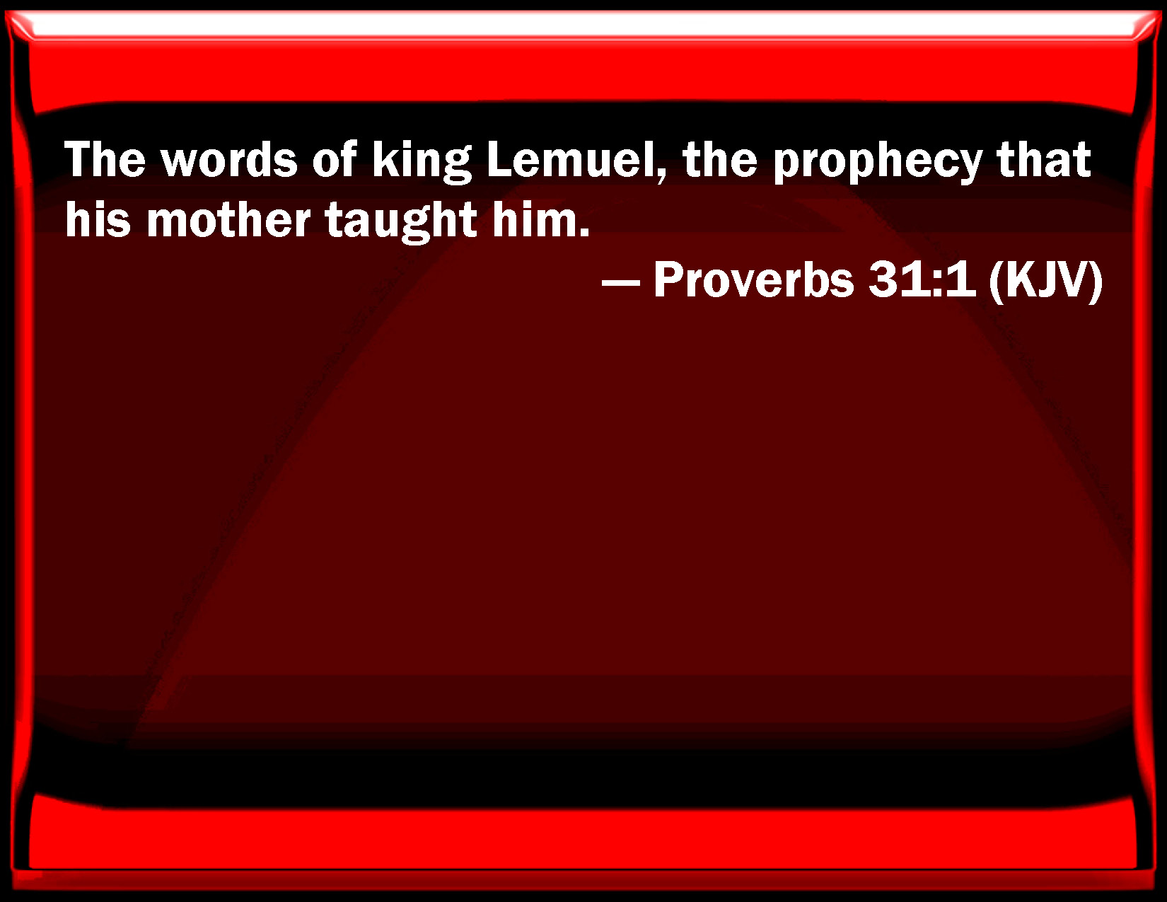 Proverbs 31:1 The words of king Lemuel, the prophecy that his mother taught him.