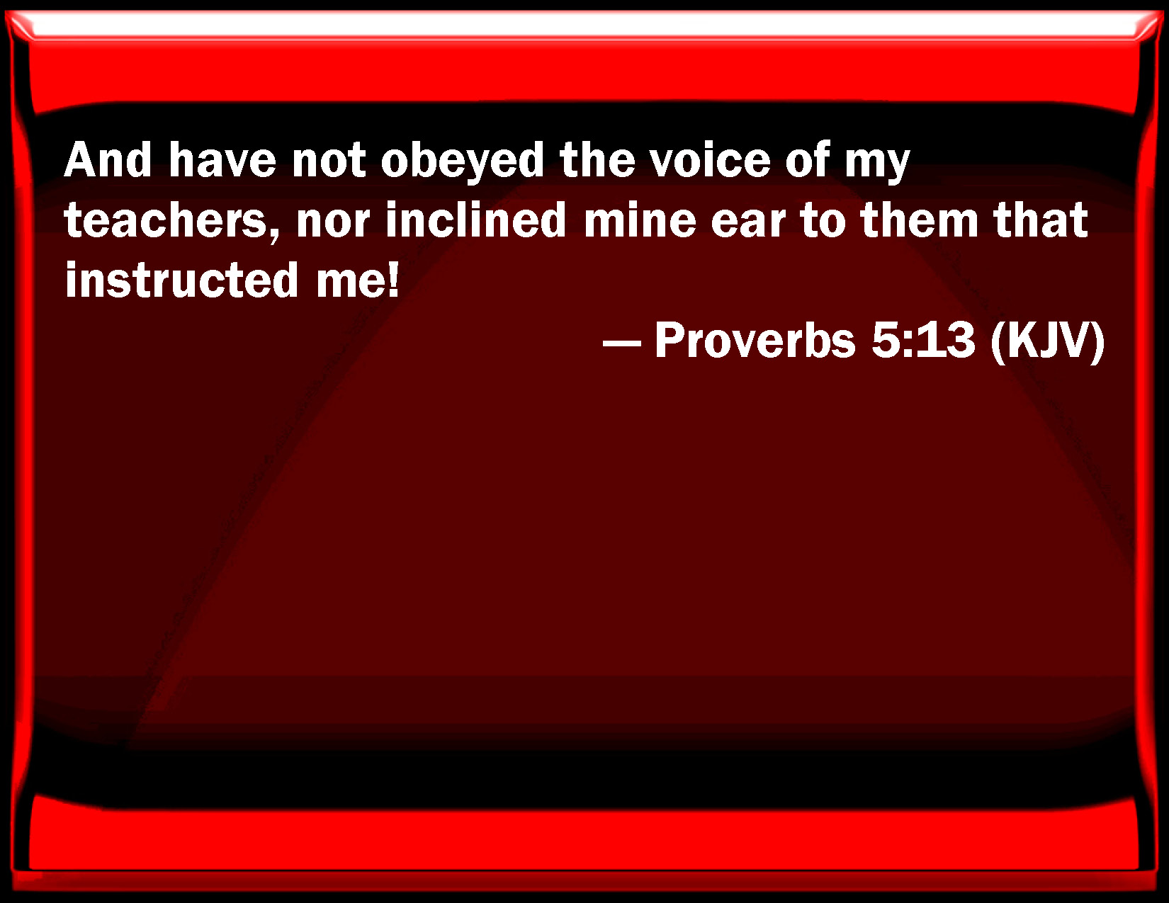 Proverbs 5:13 And have not obeyed the voice of my teachers, nor inclined my ear to them that instructed me!