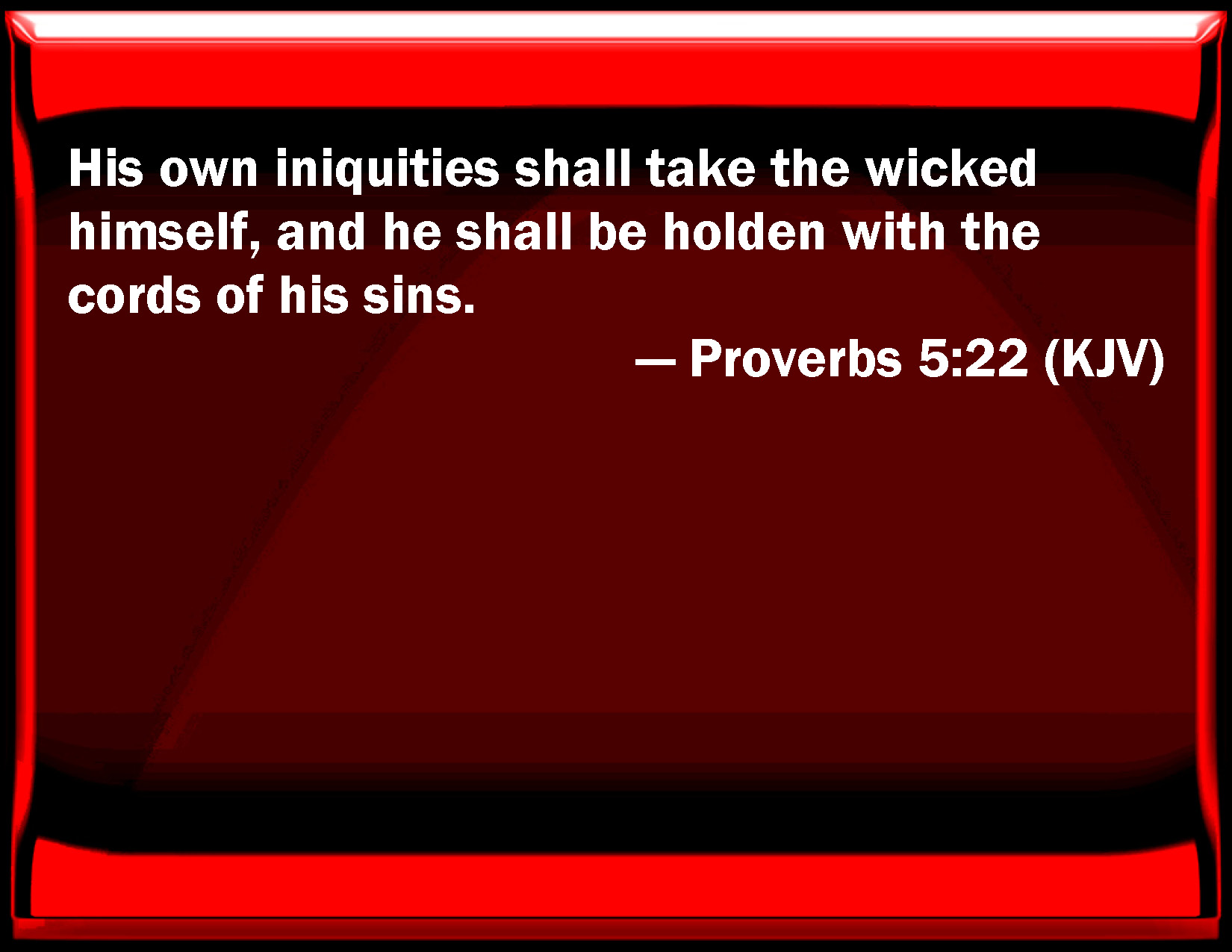 Proverbs 5:22 His own iniquities shall take the wicked himself, and he shall be held with the cords of his sins.