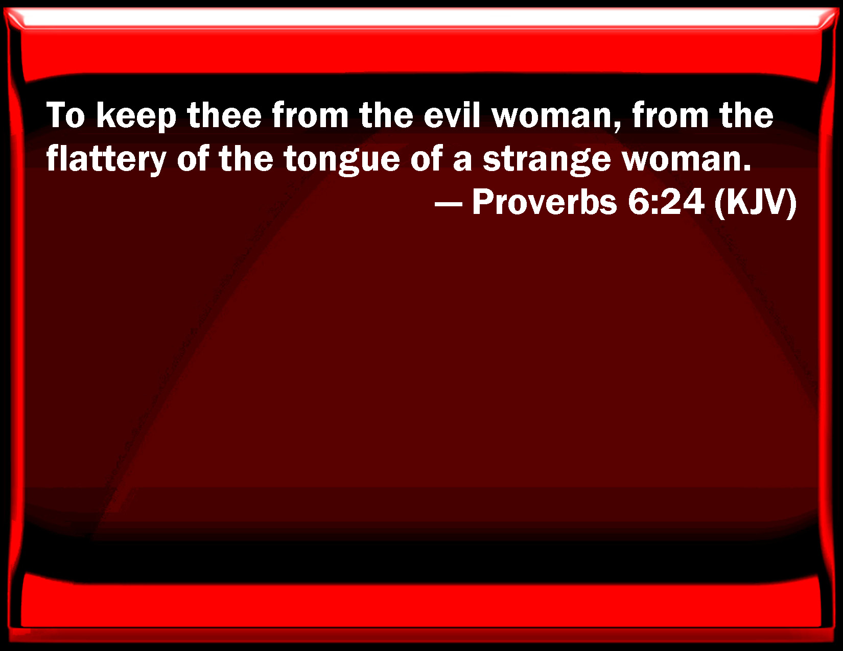 Proverbs 6:24 To keep you from the evil woman, from the flattery of the tongue of a strange woman.