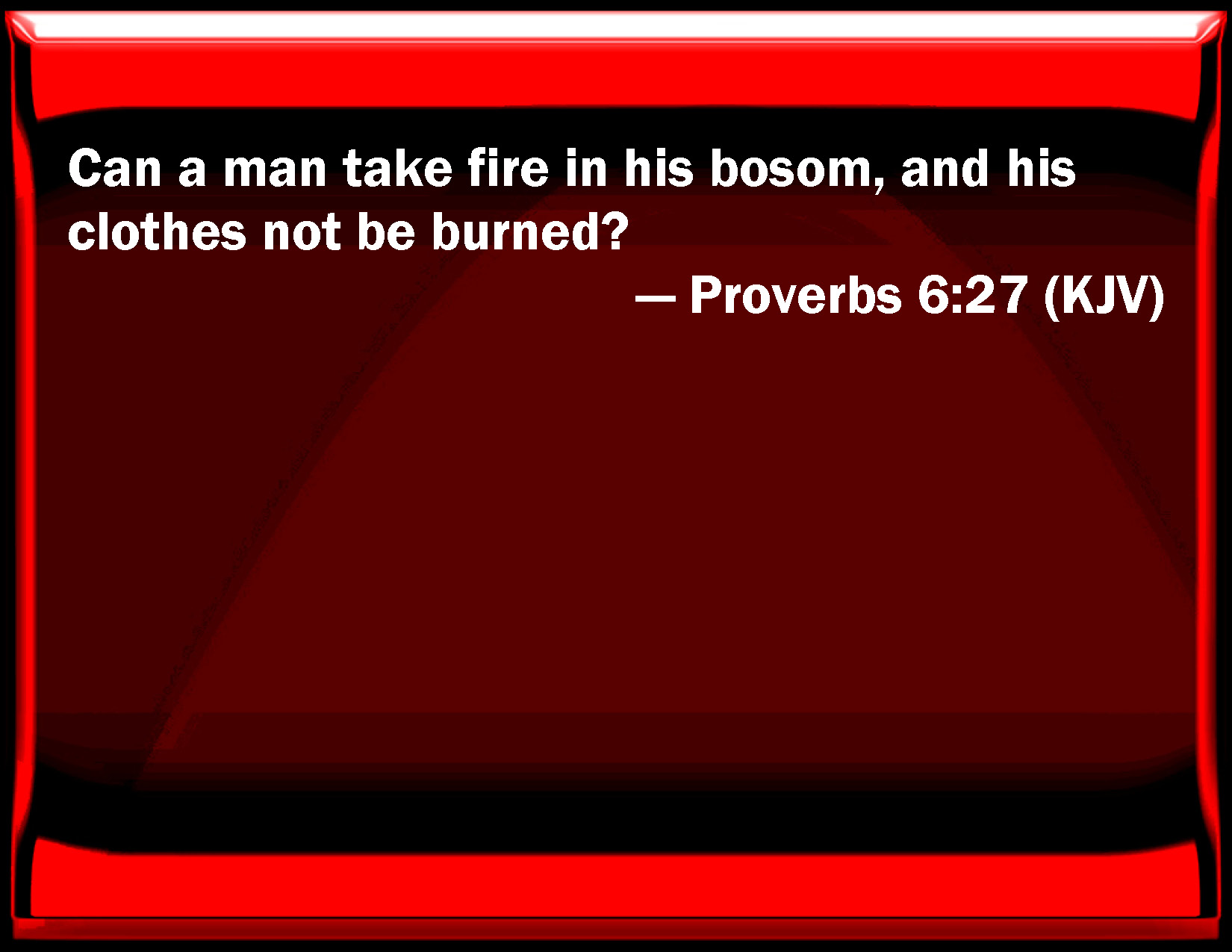 Proverbs 6:27 Can a man take fire in his bosom, and his clothes not be burned?