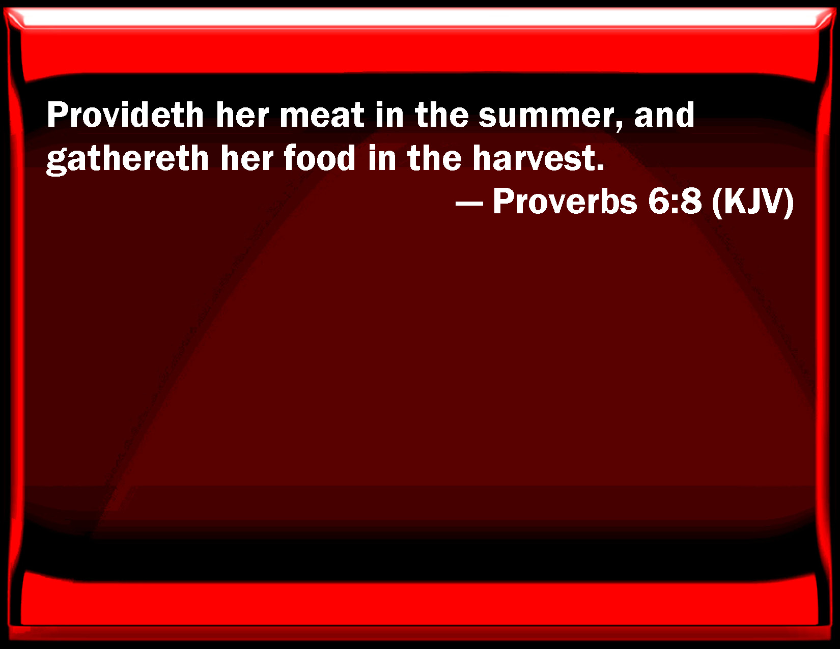 Proverbs 6:8 Provides her meat in the summer, and gathers her food in the harvest.