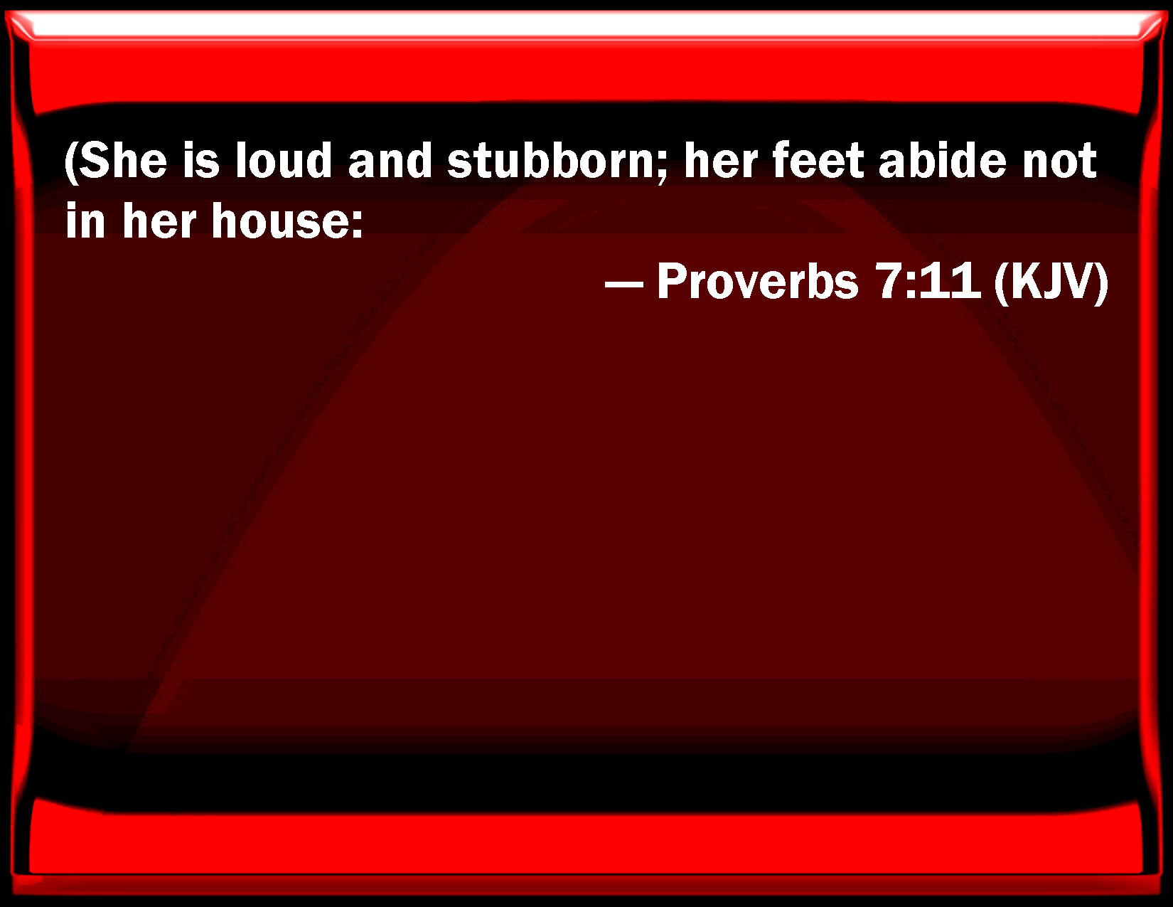 Proverbs 7:11 (She is loud and stubborn; her feet abide not in her house: